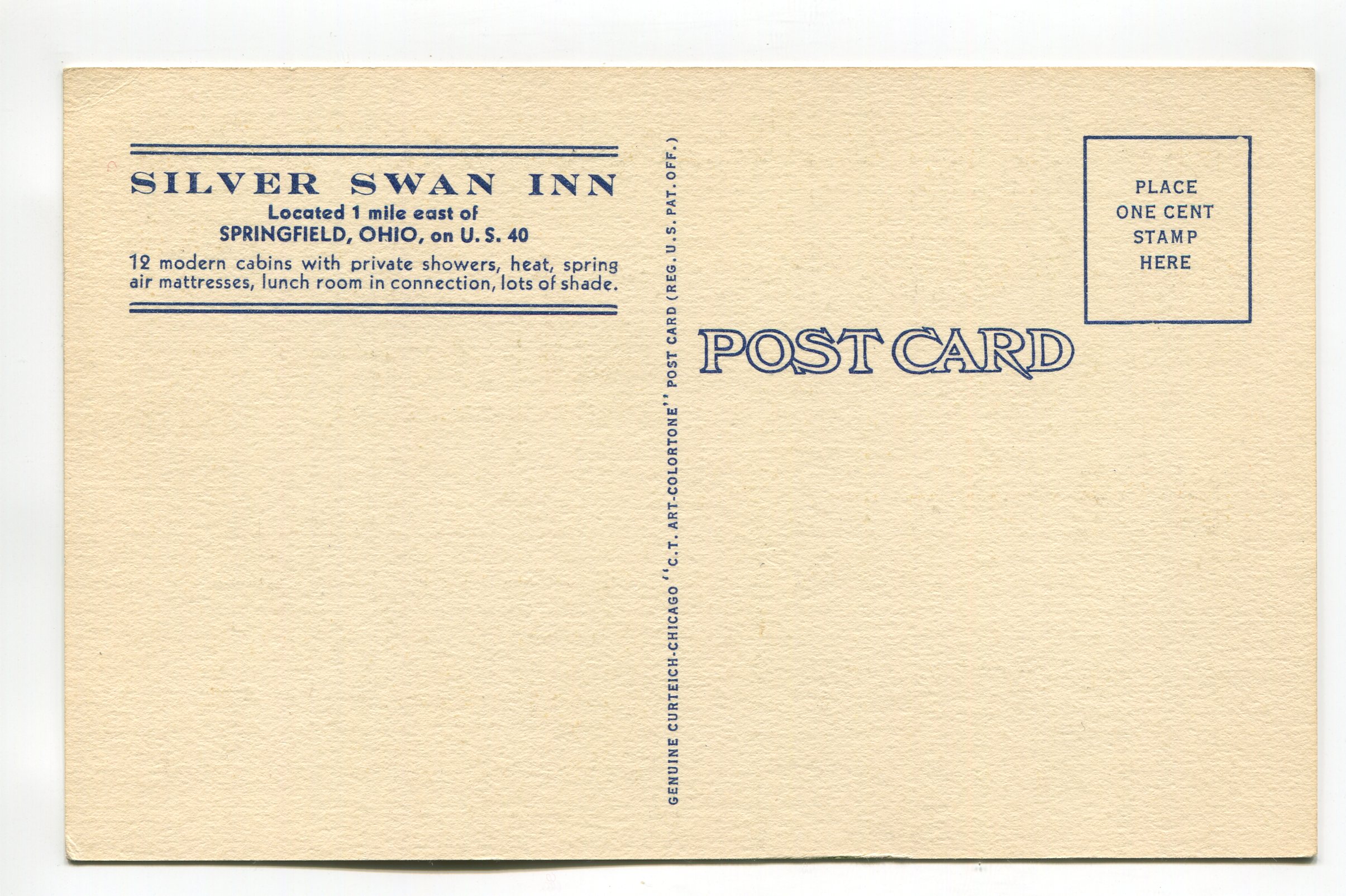 Silver Swan Inn one mile east of Springfield Ohio on Route 40 postcard