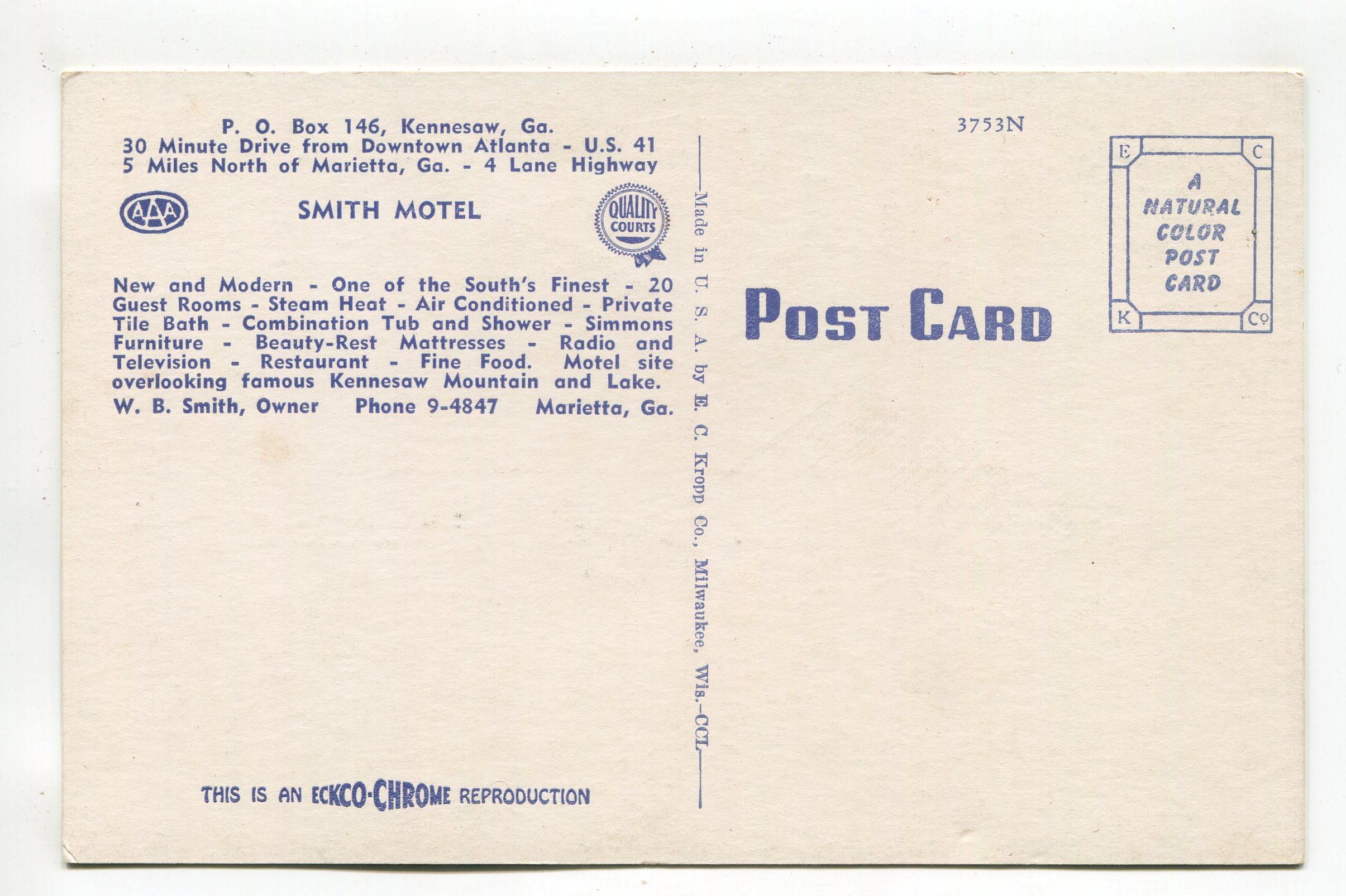 Smith Motel 5 miles north of Marietta Georgia on 4-lane US 41 postcard