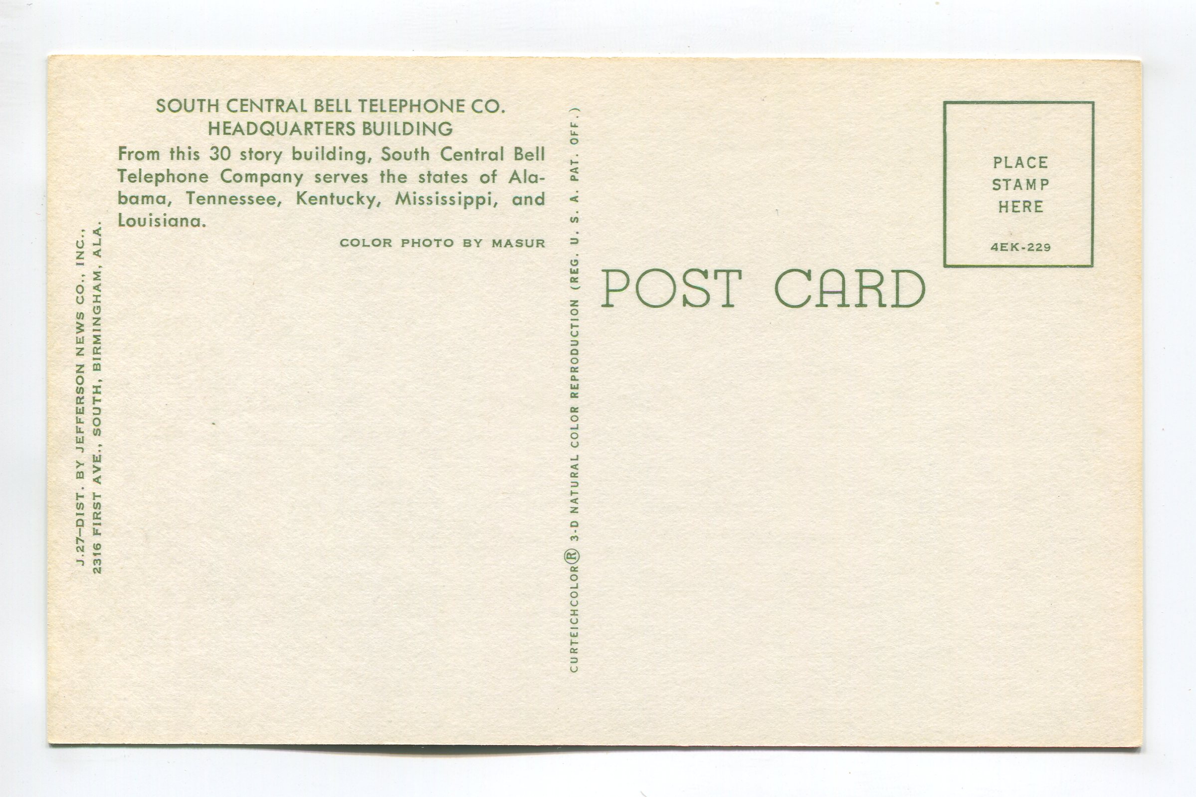 South Central Bell Telephone Company Headquarters Building postcard