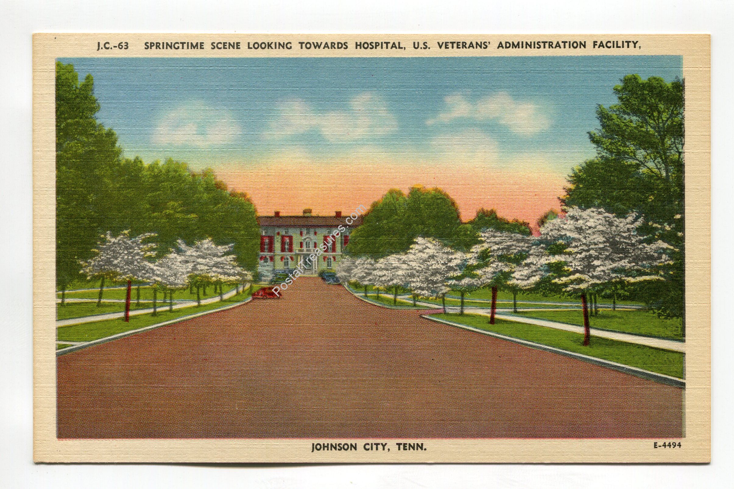 Springtime Scene looking towards Hospital US Veterans Administration Facility Johnson City Tennessee postcard