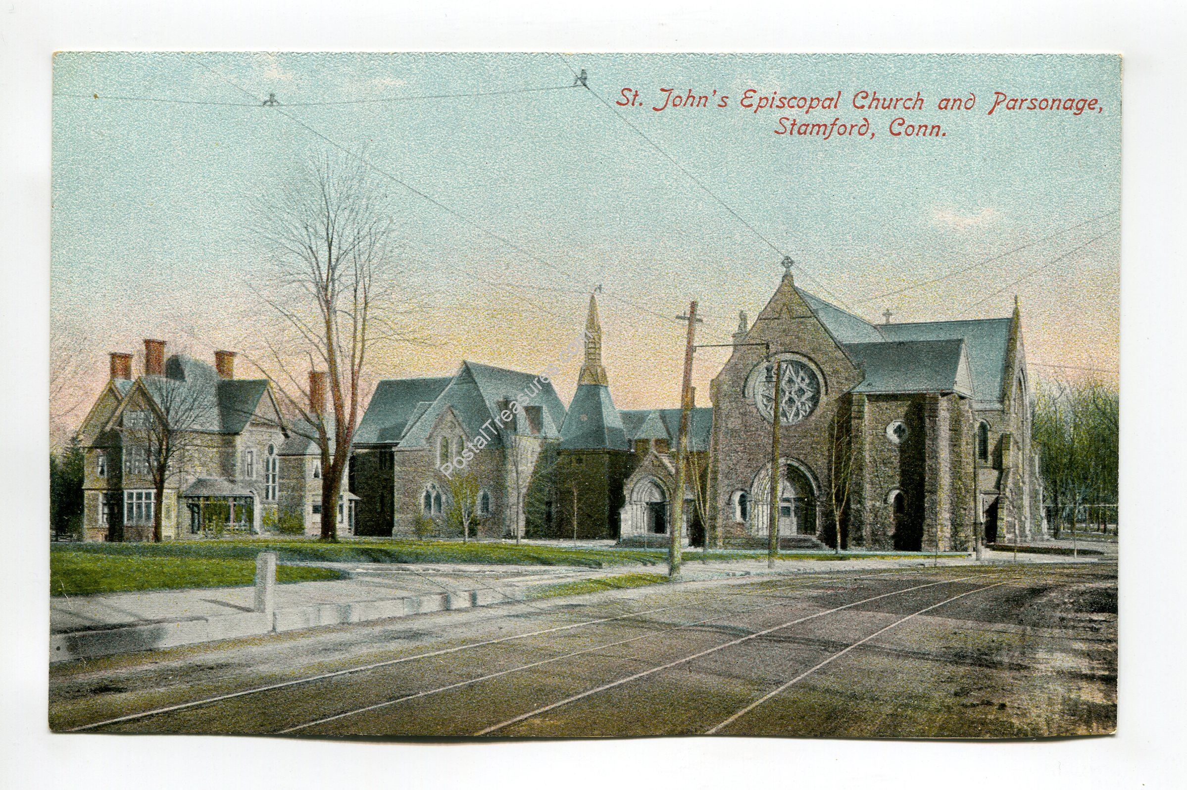 St Johns Episcopal Church and Parsonage Stamford Connecticut postcard