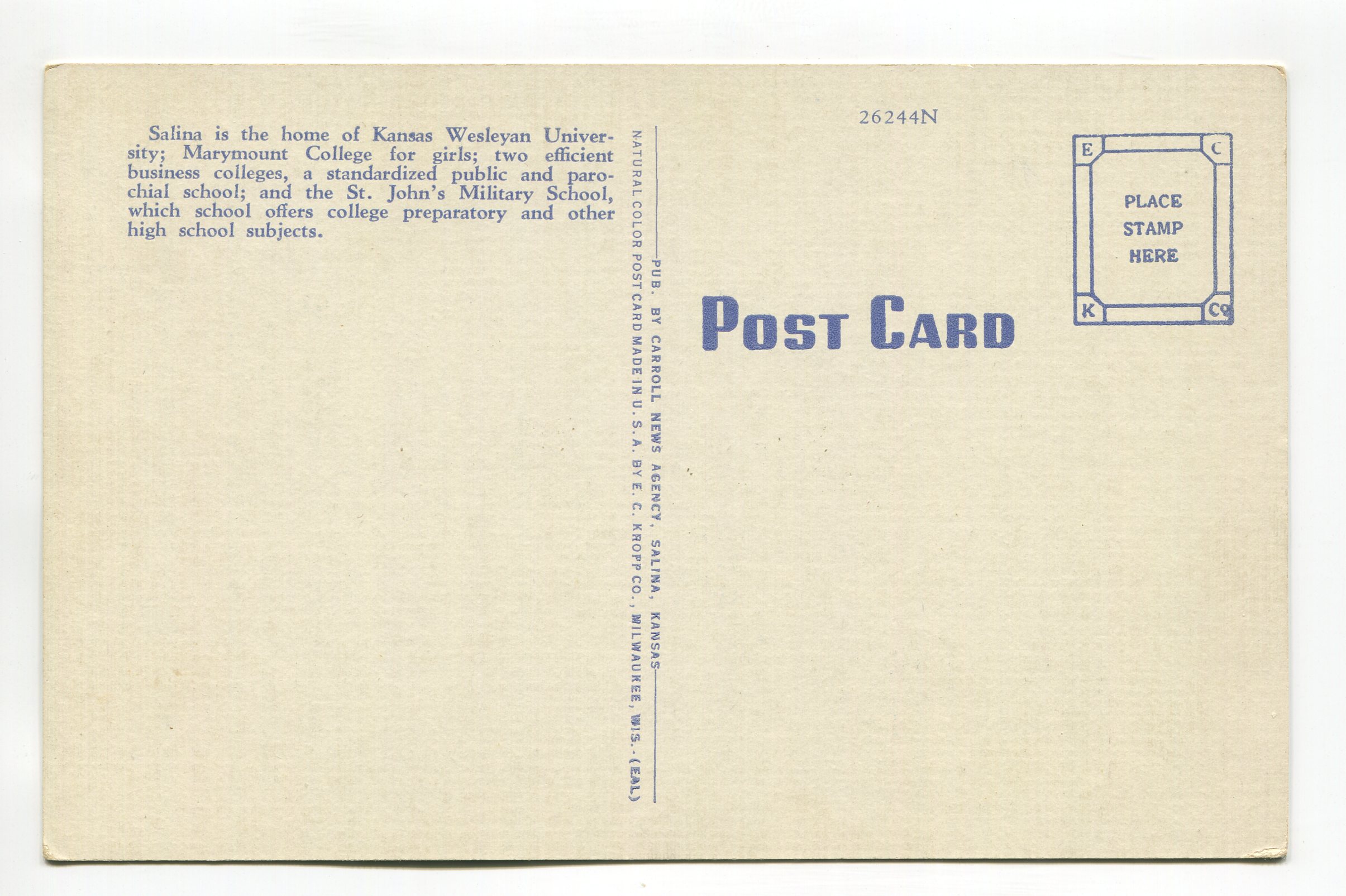 St John’s Military School Salina Kansas postcard
