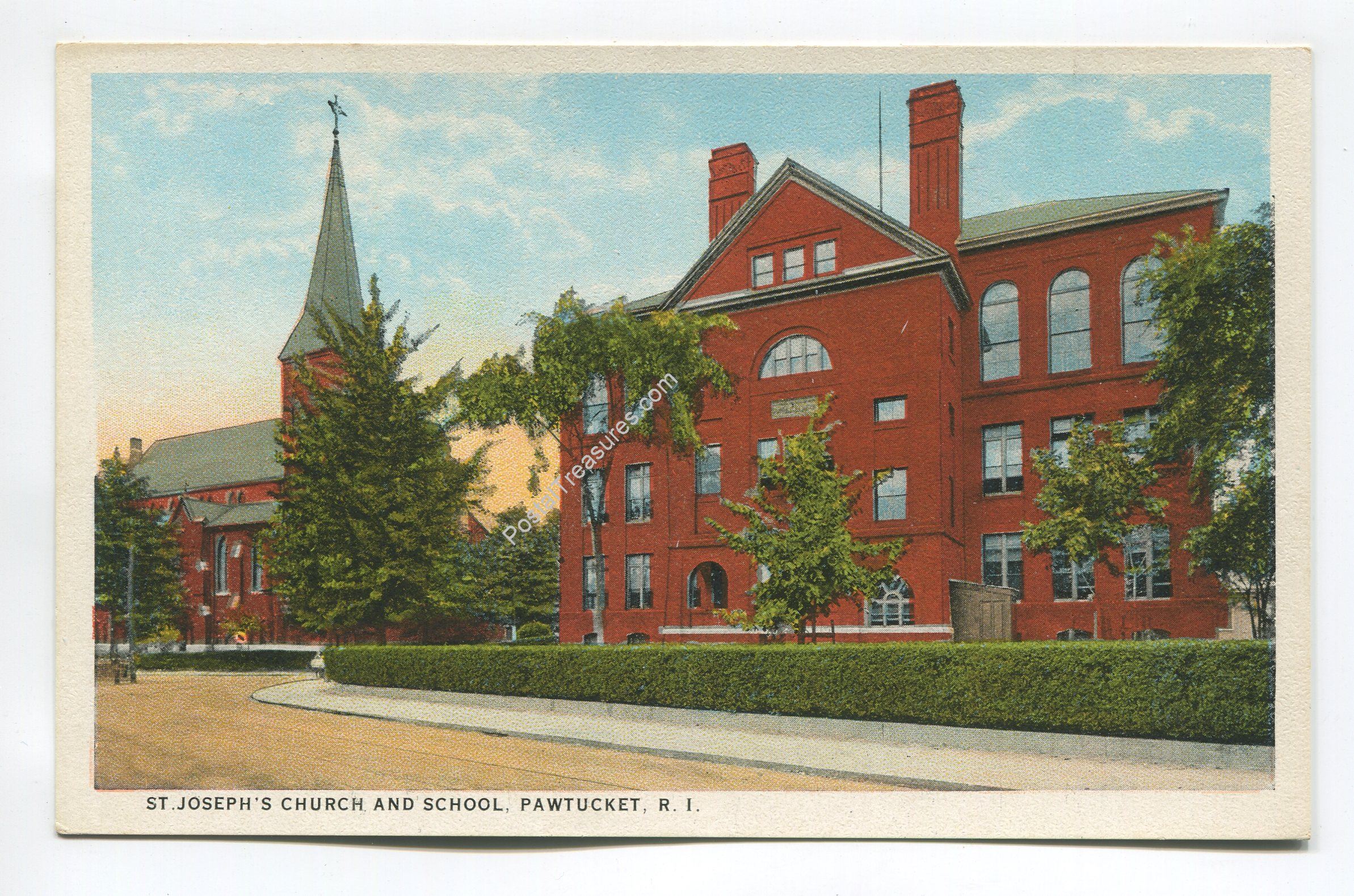 St Josephs Church and School Pawtucket Rhode Island postcard