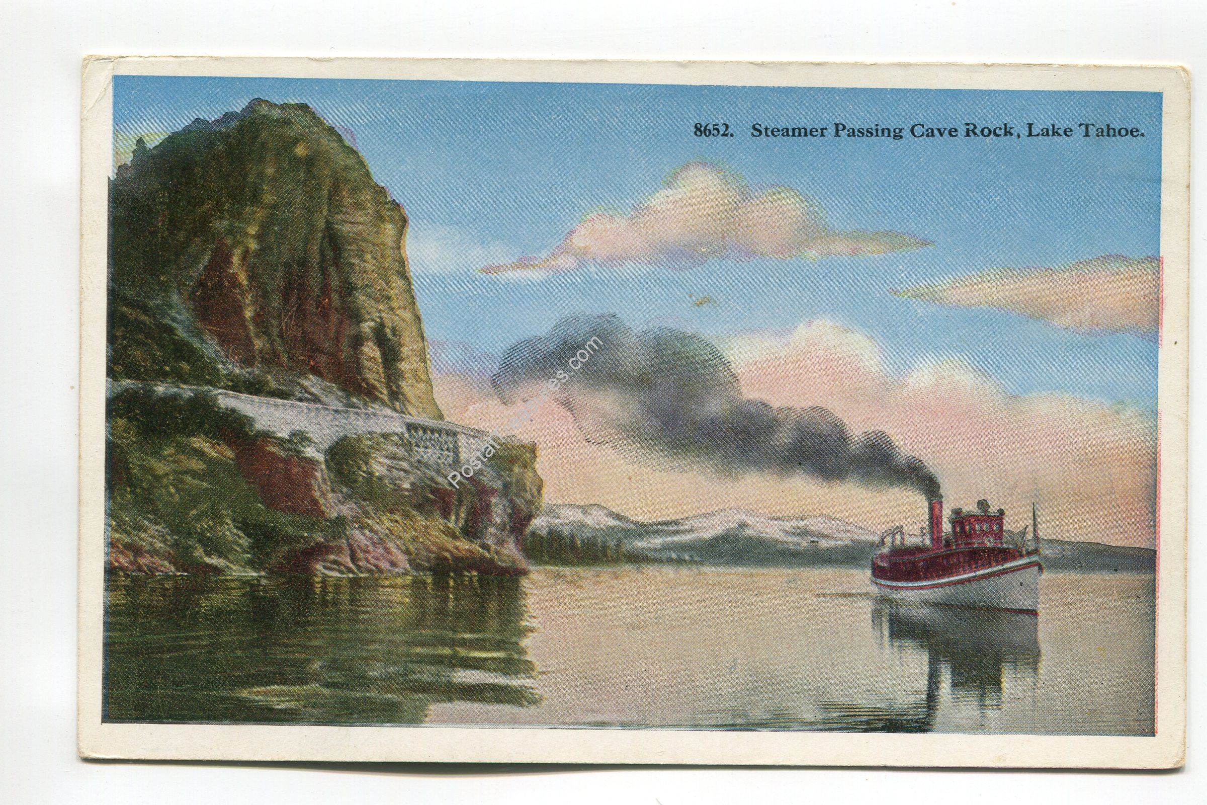 Steamer Passing Cave Rock Lake Tahoe California postcard