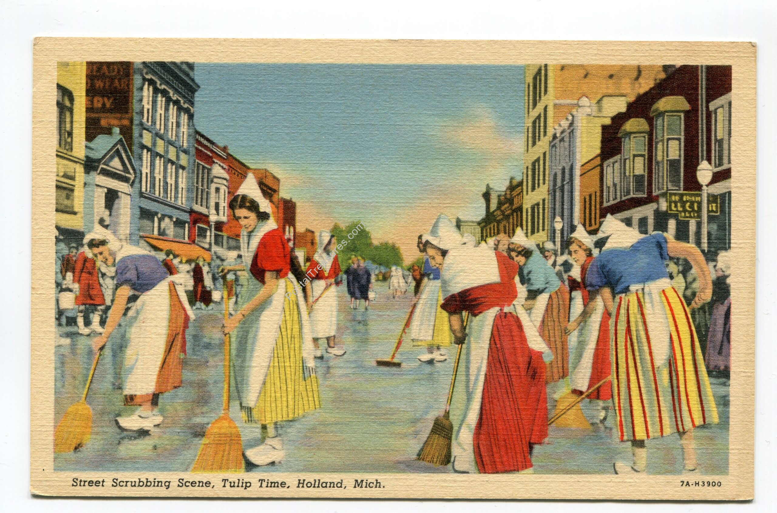 Street Scrubbing Scene Tulip Time Holland Michigan postcard