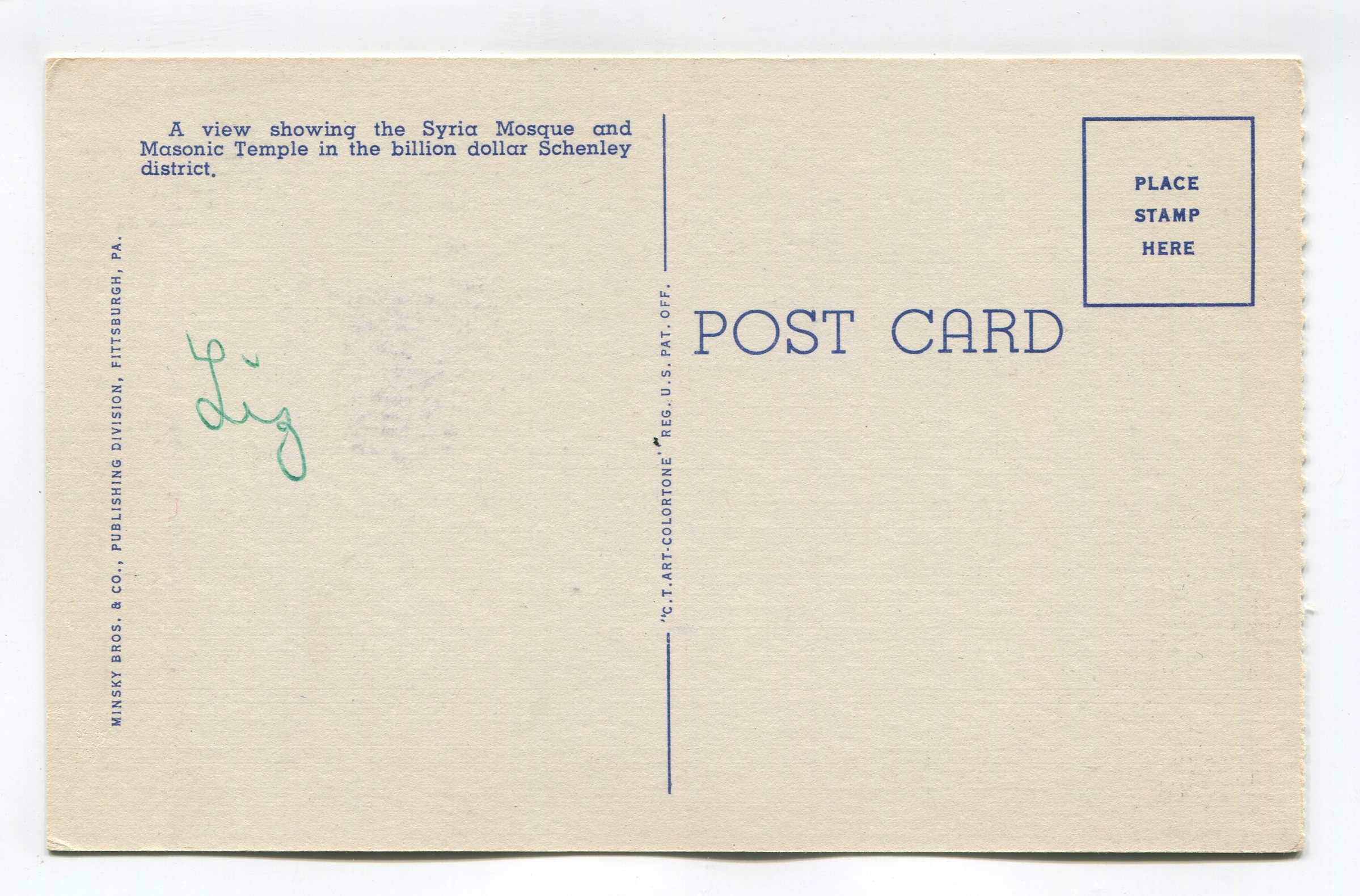 Syria Mosque Pittsburgh Athletic Association and Masonic Temple Schenley District Pittsburgh Pennsylvania postcard