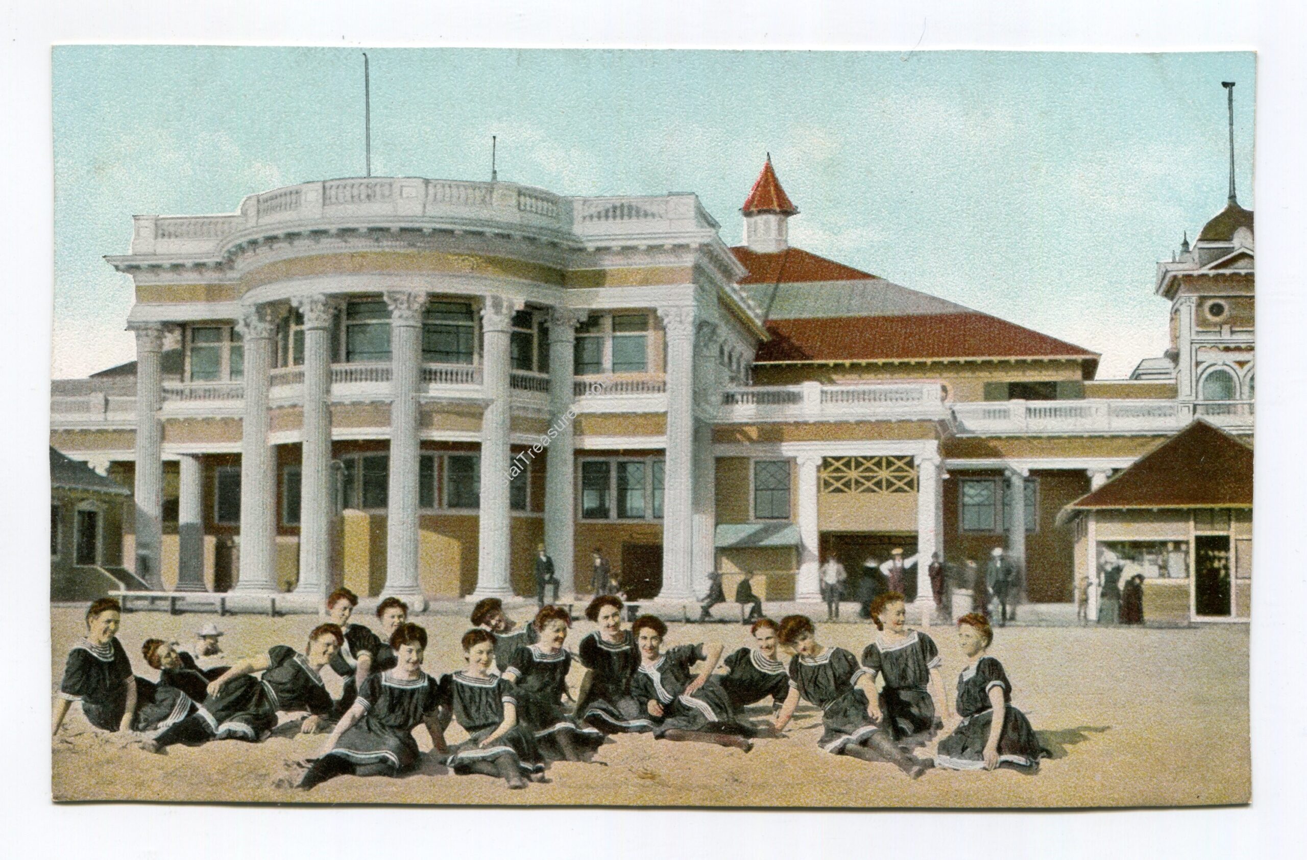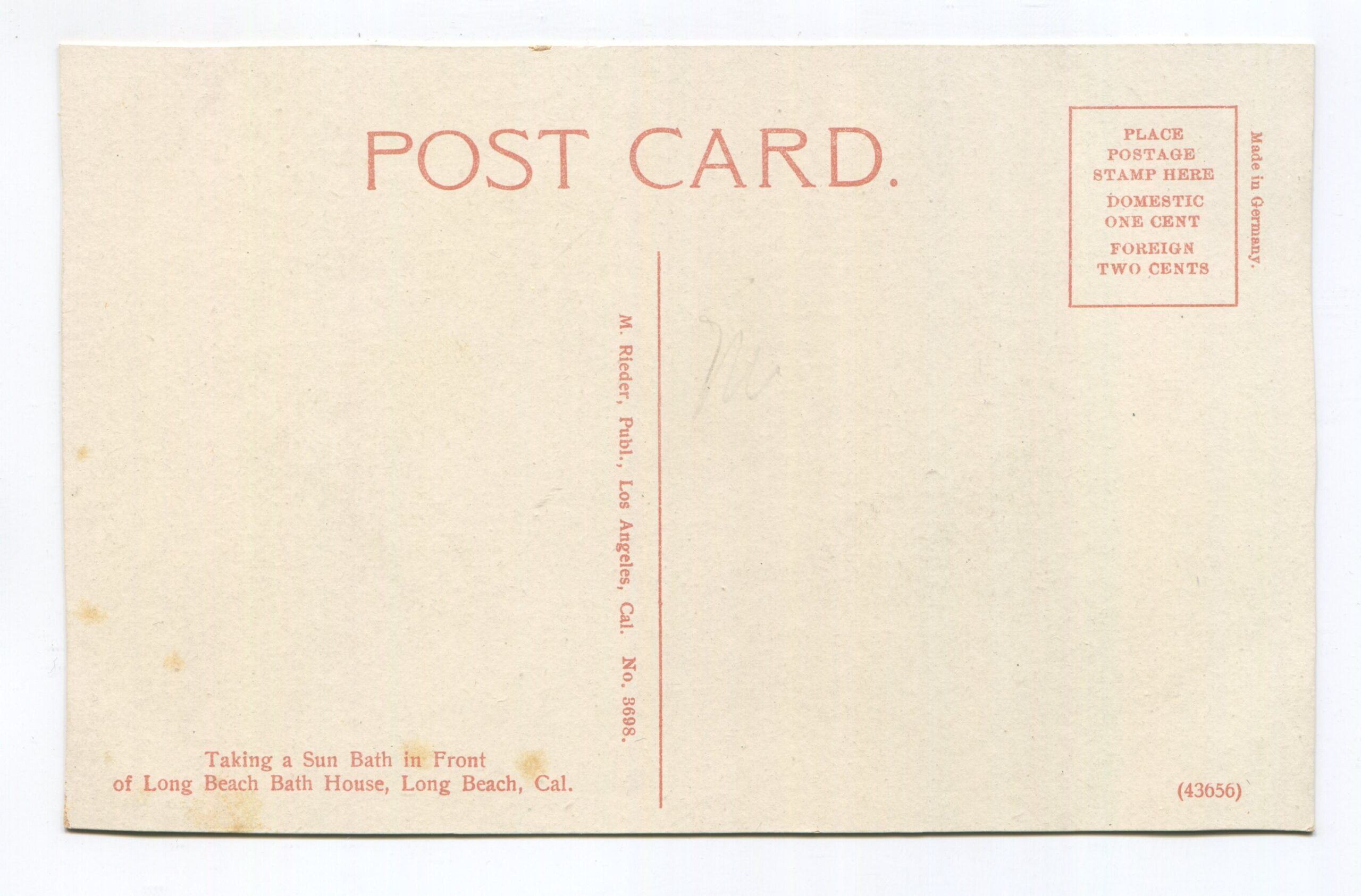Taking a Sun Bath in Front of Long Beach Bath House Long Beach California postcard