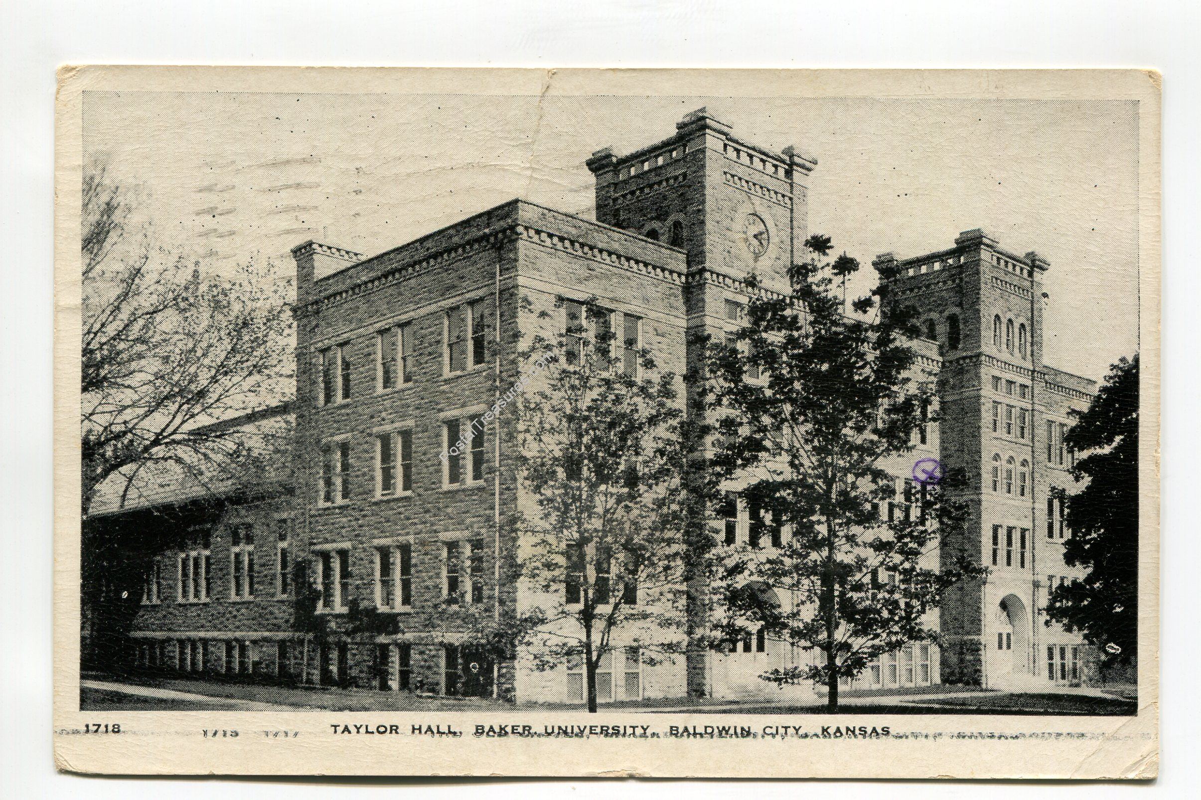 Taylor Hall Baker University Baldwin City Kansas postcard