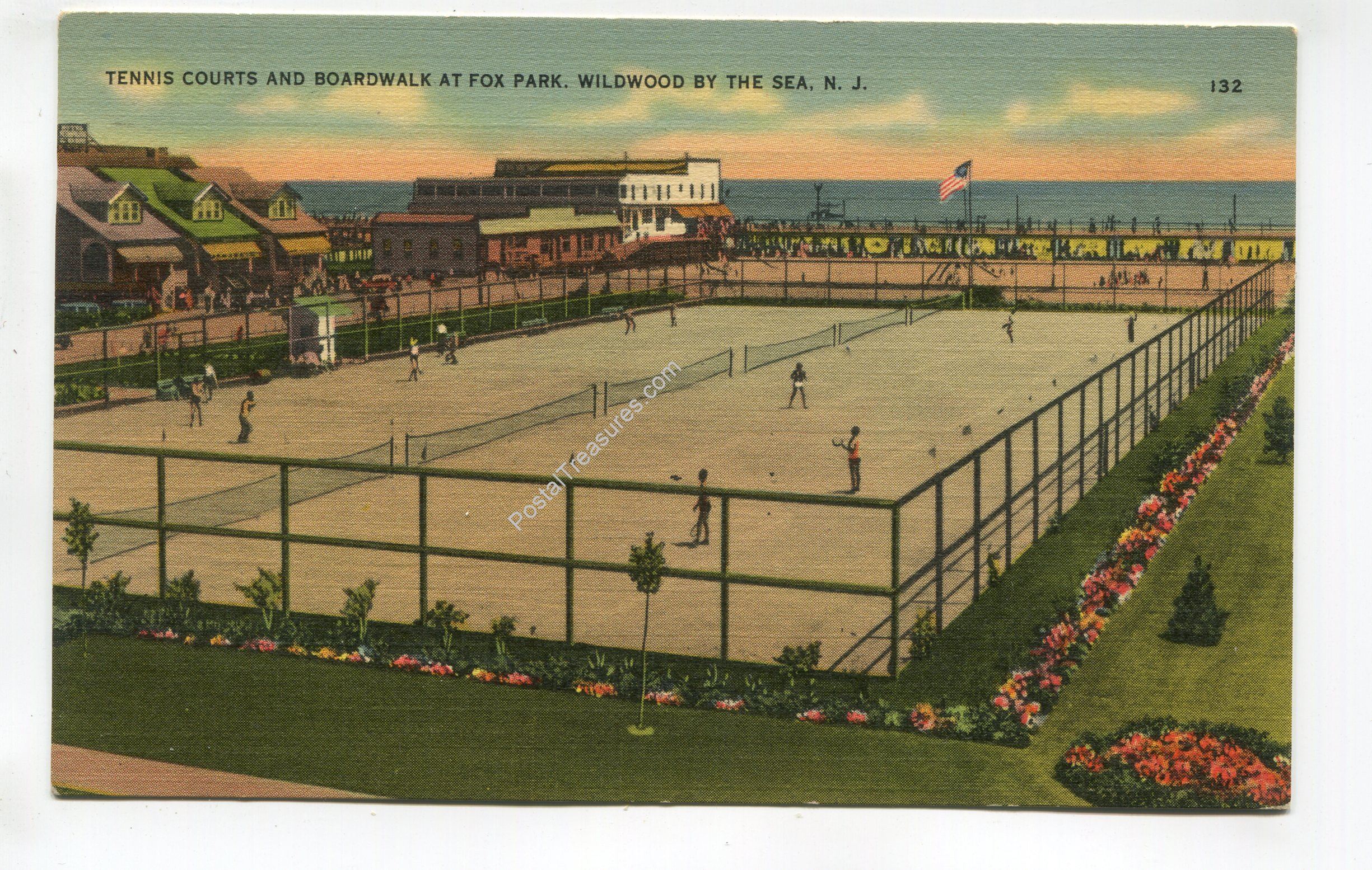 Tennis Courts and Boardwalk at Fox Park Wildwood by the Sea New Jersey postcard