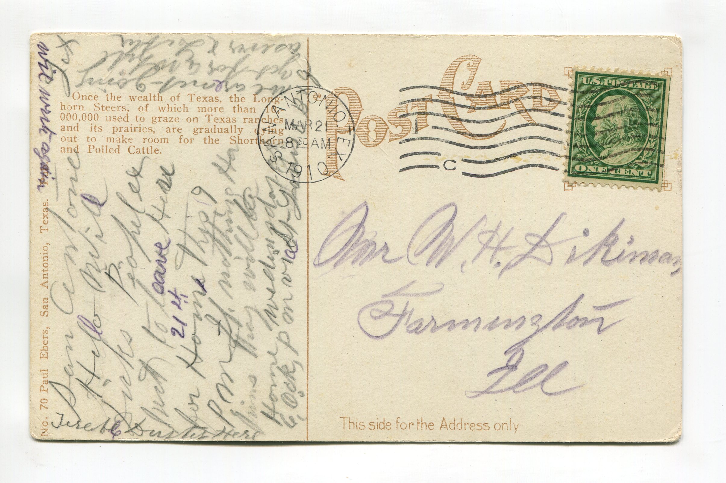 Texas Longhorn Steer width of horns 9 ft 6 in postcard