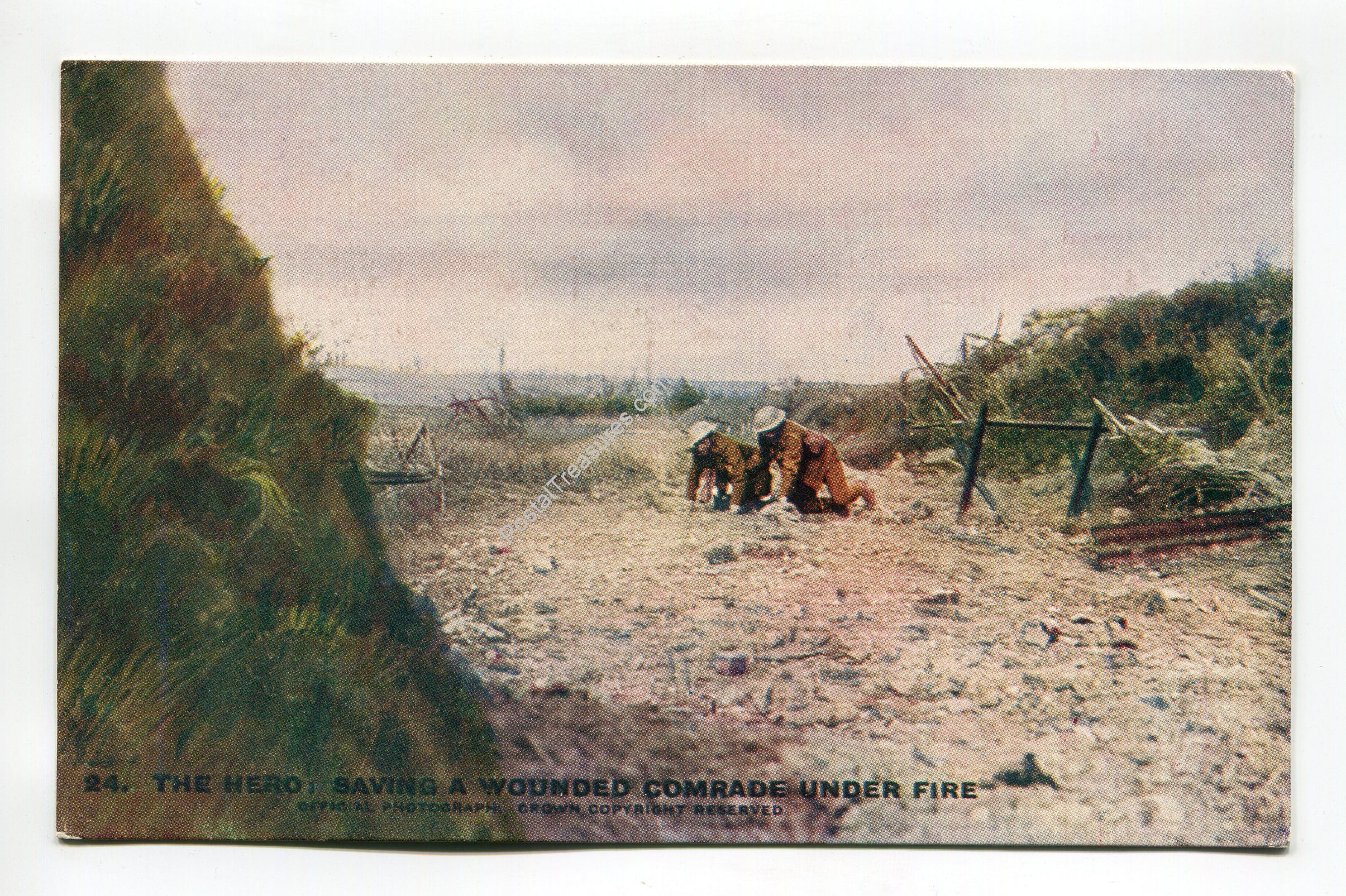 The hero saving a wounded comrade under fire postcard
