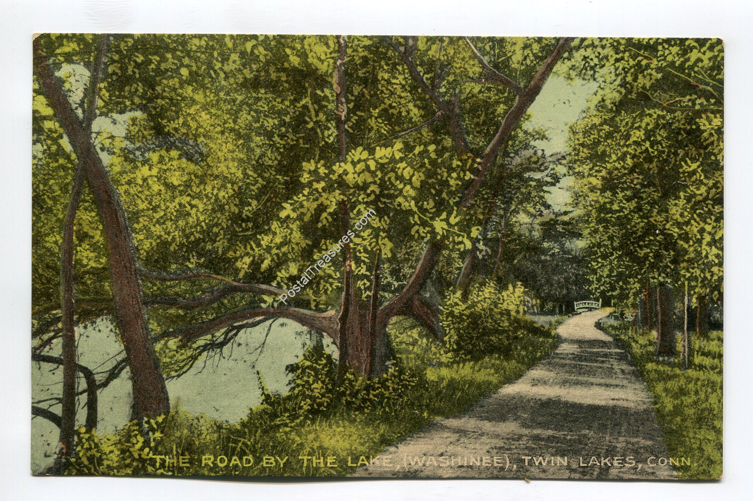The Road by the Lake (Washinee) Twin Lakes Connecticut postcard