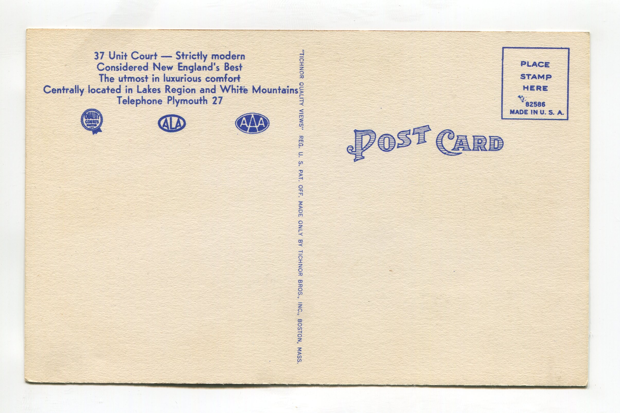Tobey’s Motor Court Plymouth New Hampshire postcard