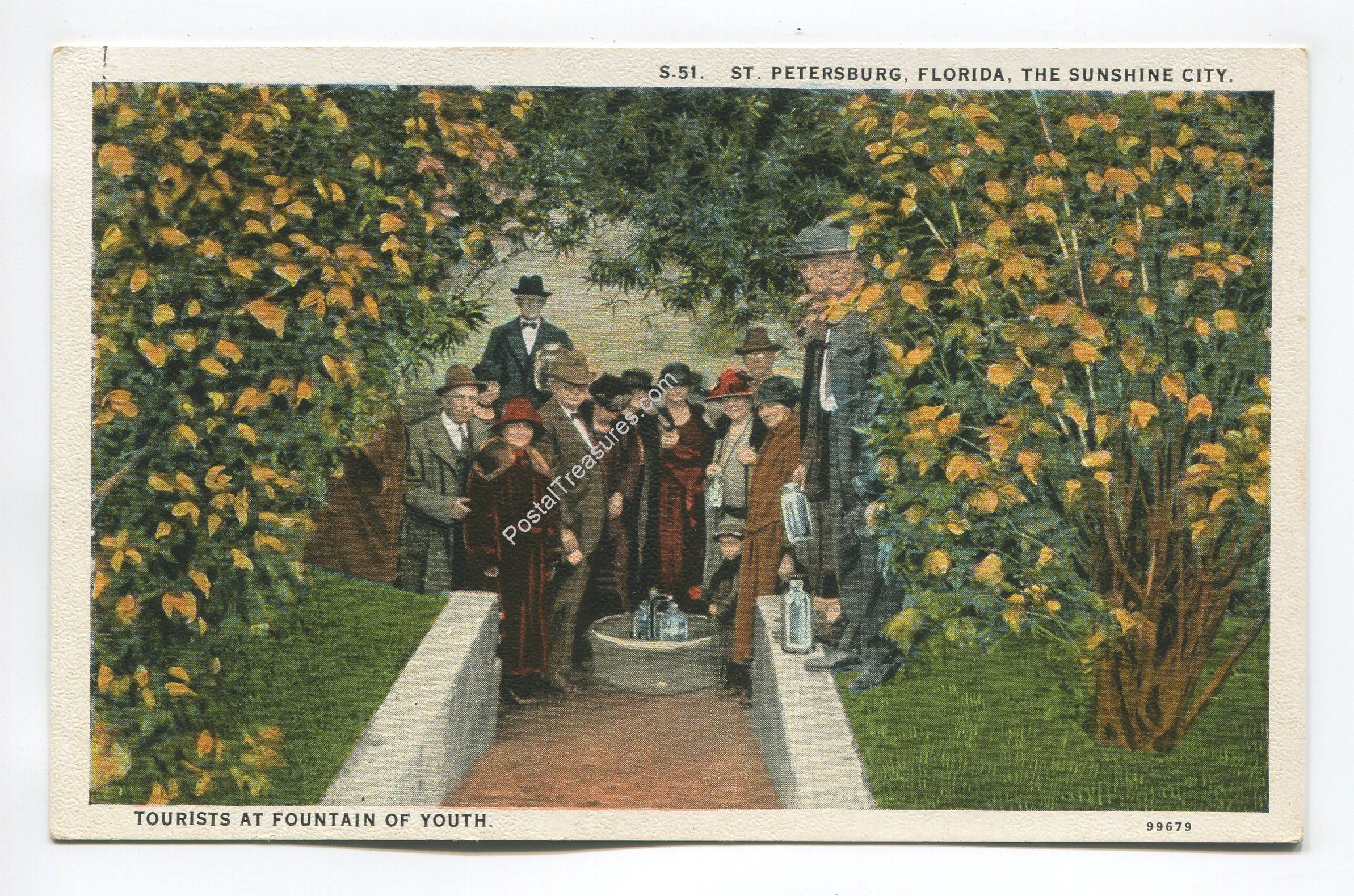 Tourists at Fountain of Youth St Petersburg Florida postcard