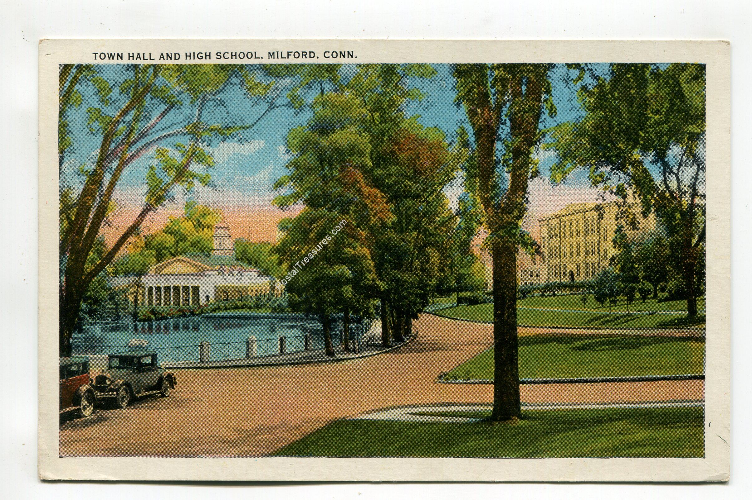 Town Hall and High School Milford Connecticut postcard