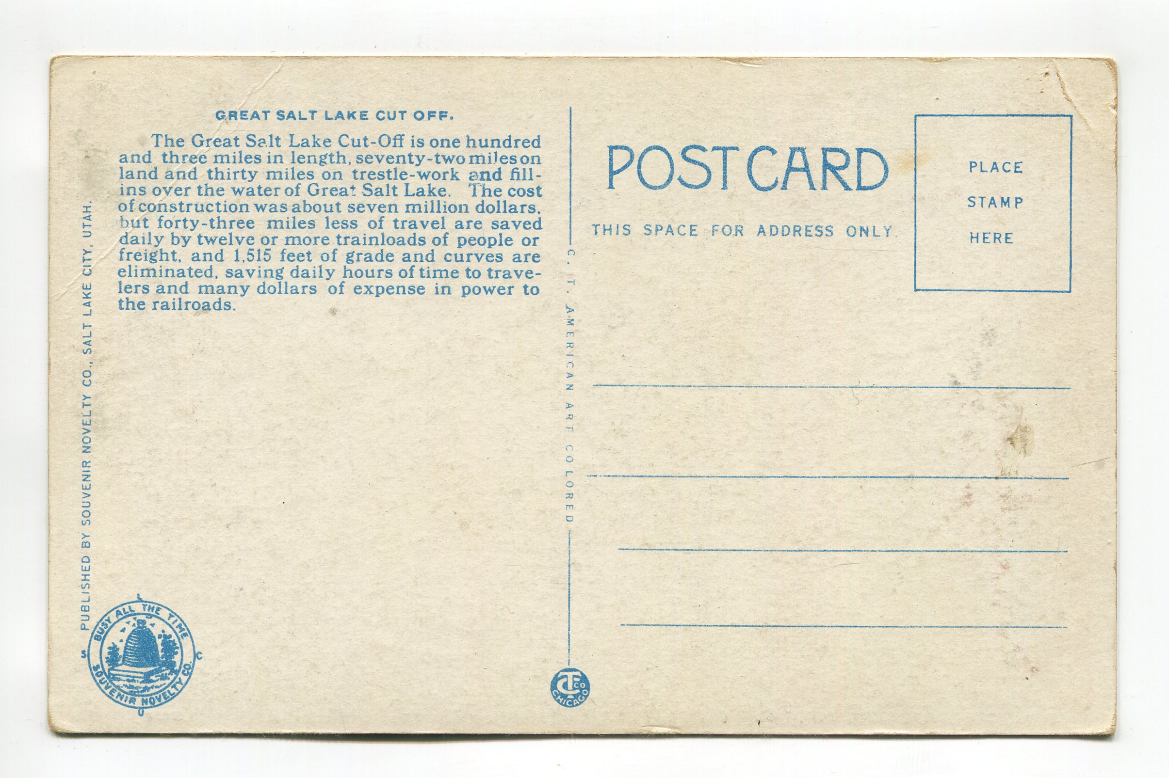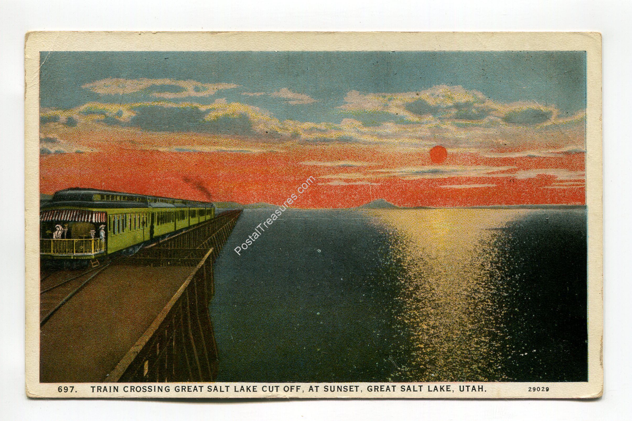 Train Crossing Great Salt Lake Cut Off at Sunset Great Salt Lake Utah postcard