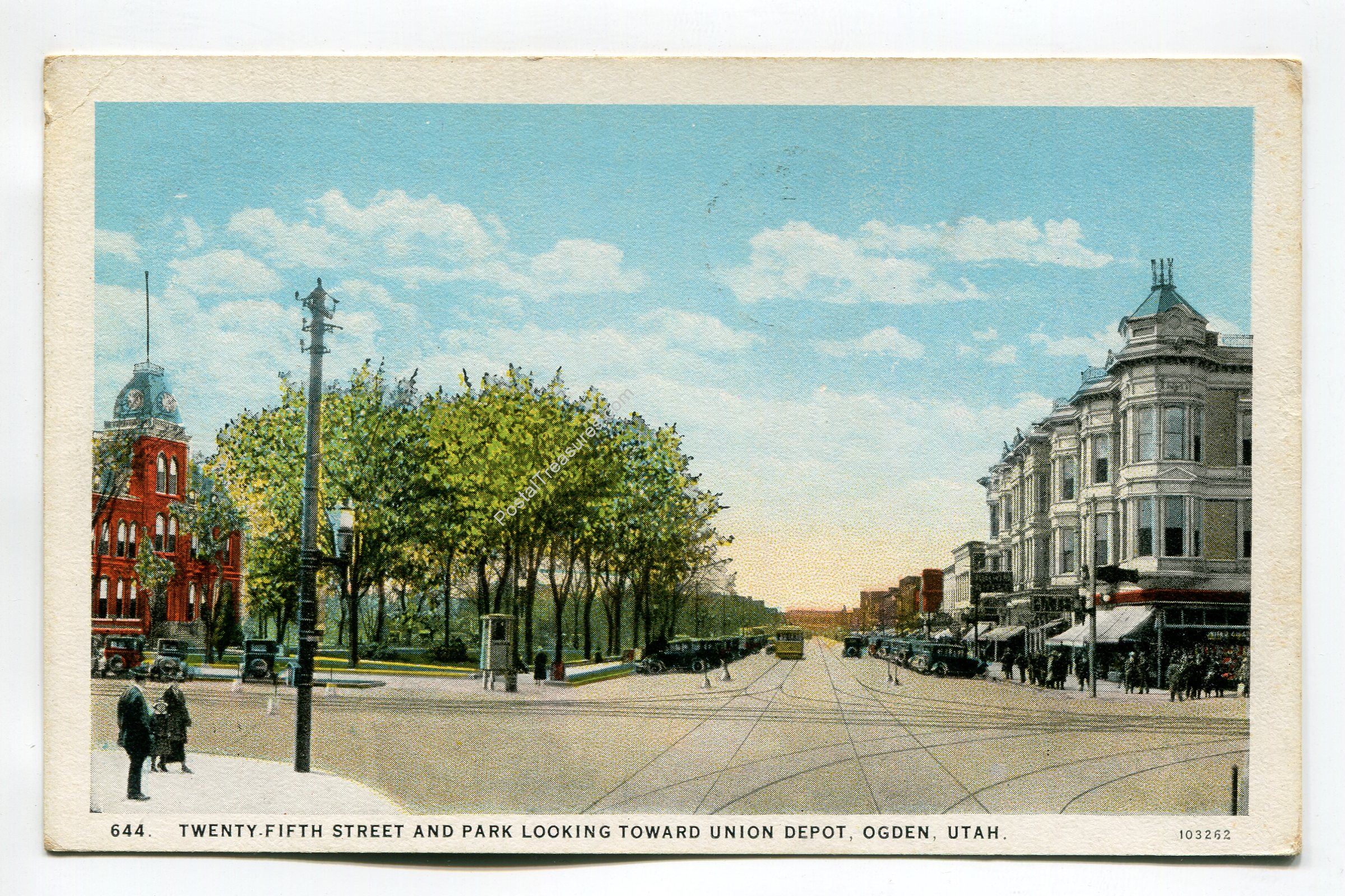 Twenty-fifth Street and Park looking toward Union Depot Ogden Utah postcard
