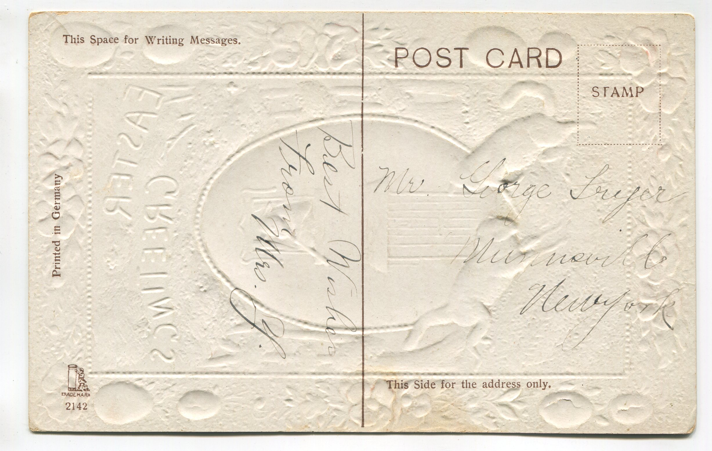 Two Lambs playing outside Egg House Easter Greetings postcard