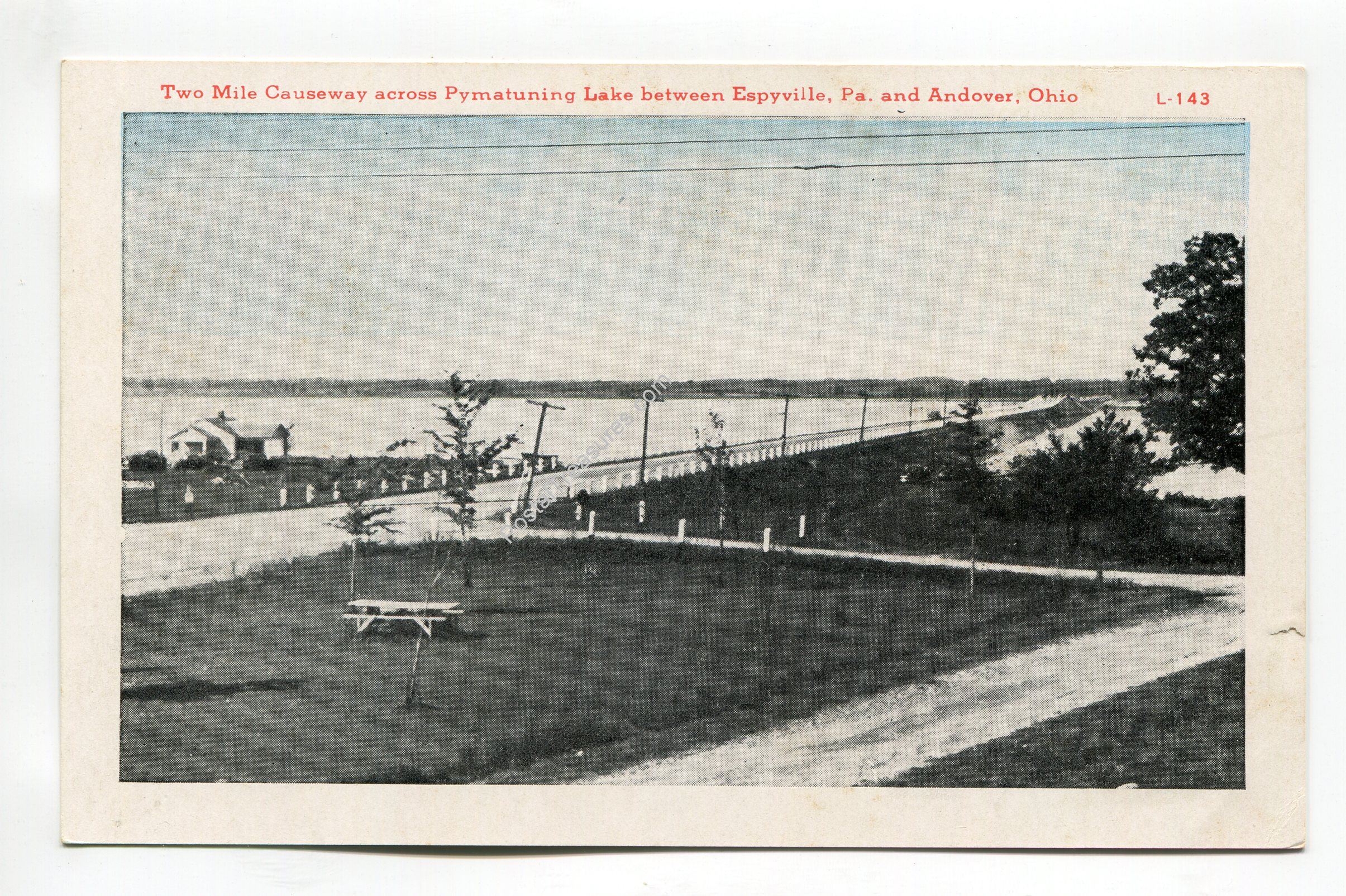 Two Mile Causeway across Pymatuning Lake between Espyville Pennsylvania and Andover Ohio postcard