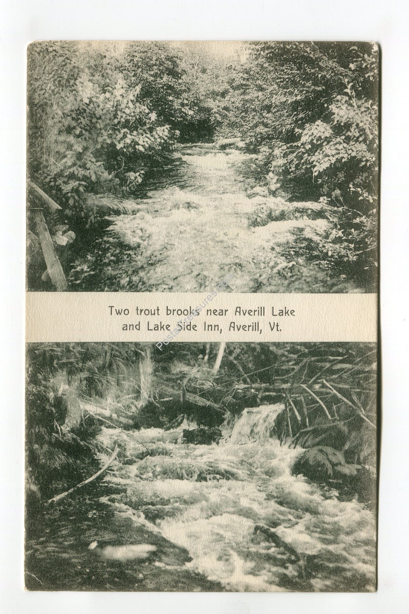 Two Trout Brooks near Averill Lake and Lake Side Inn Averill Vermont postcard