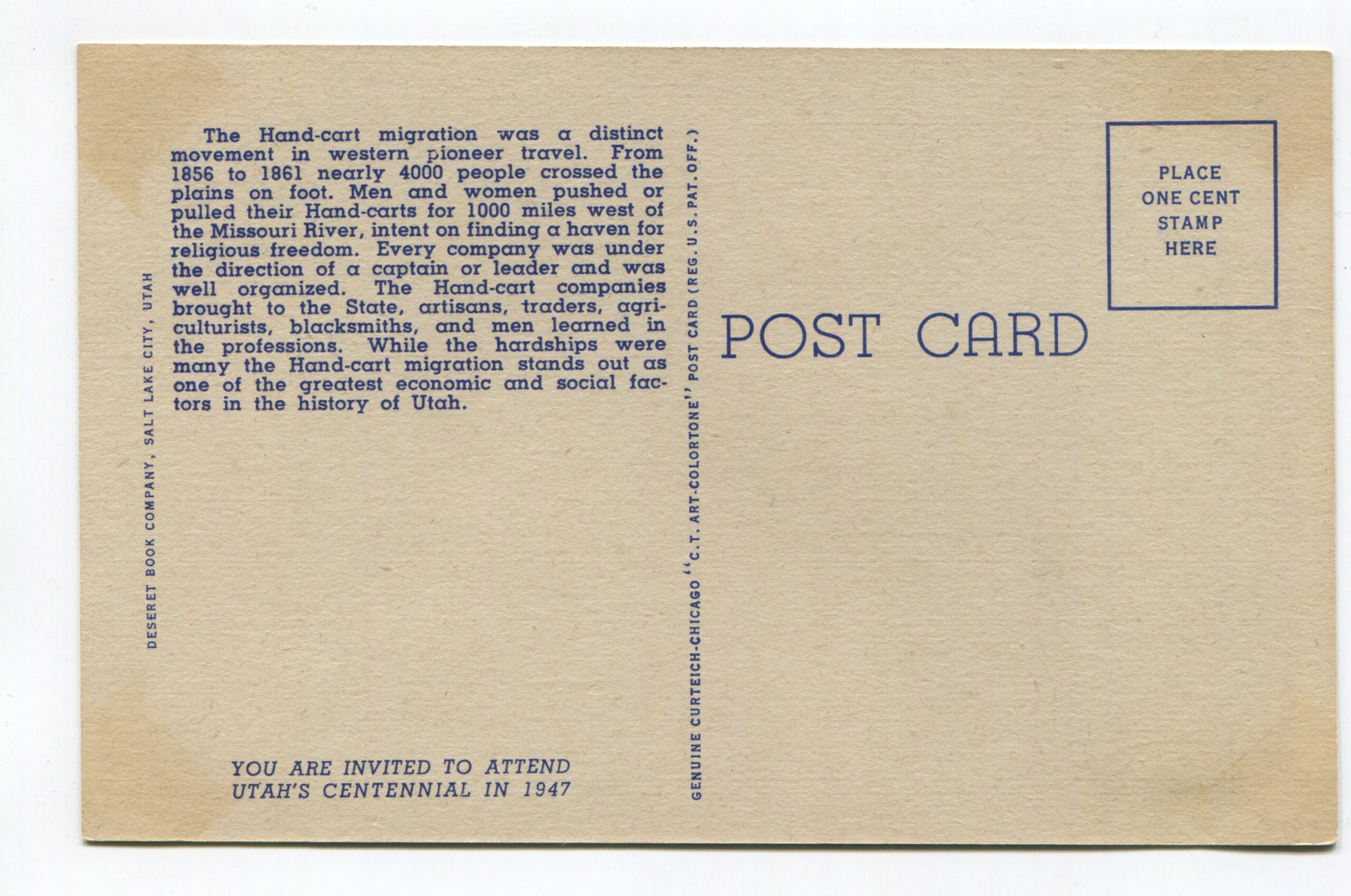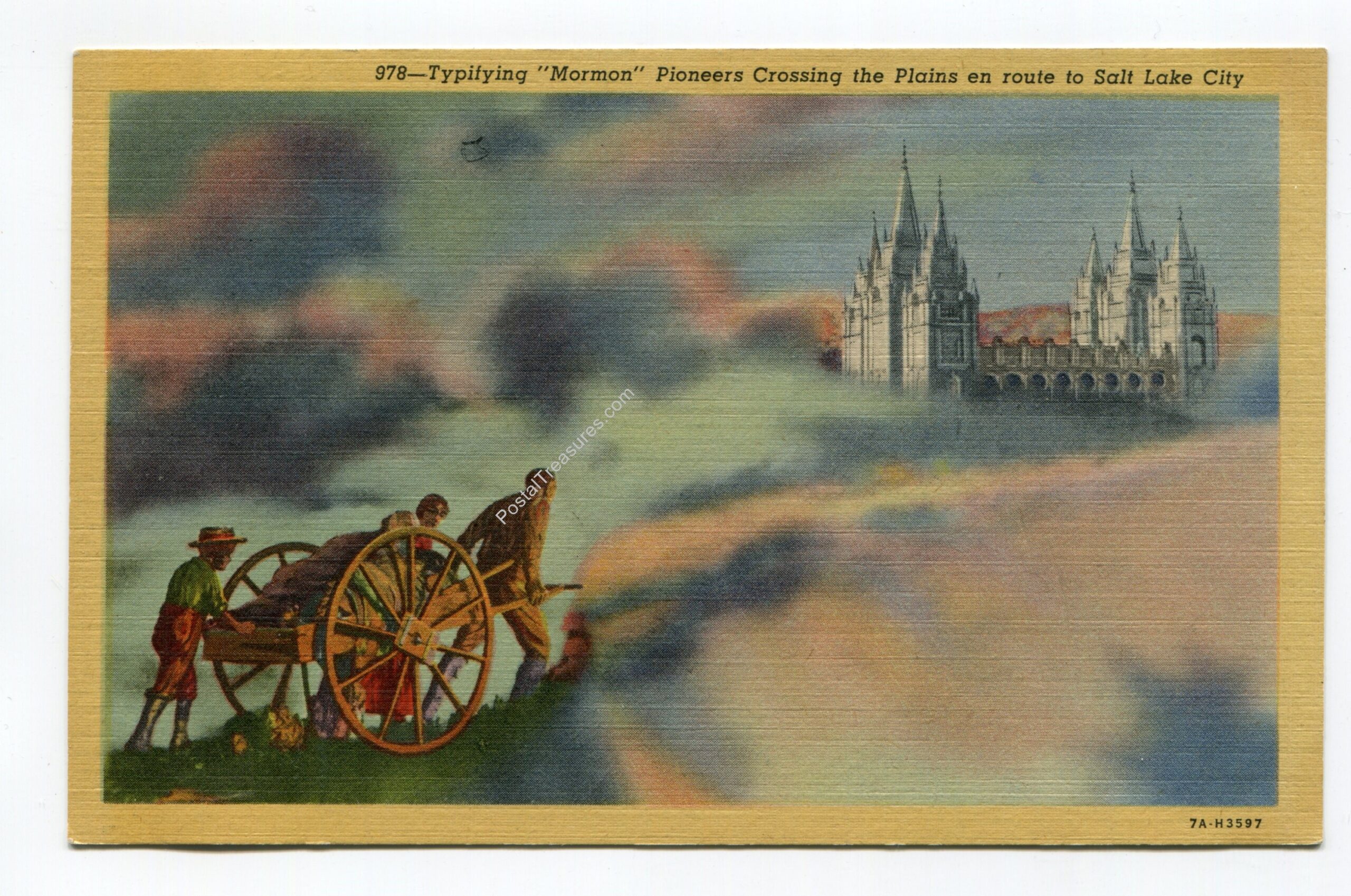 Typifying Mormon Pioneers Crossing the Plains en route to Salt Lake City Utah postcard
