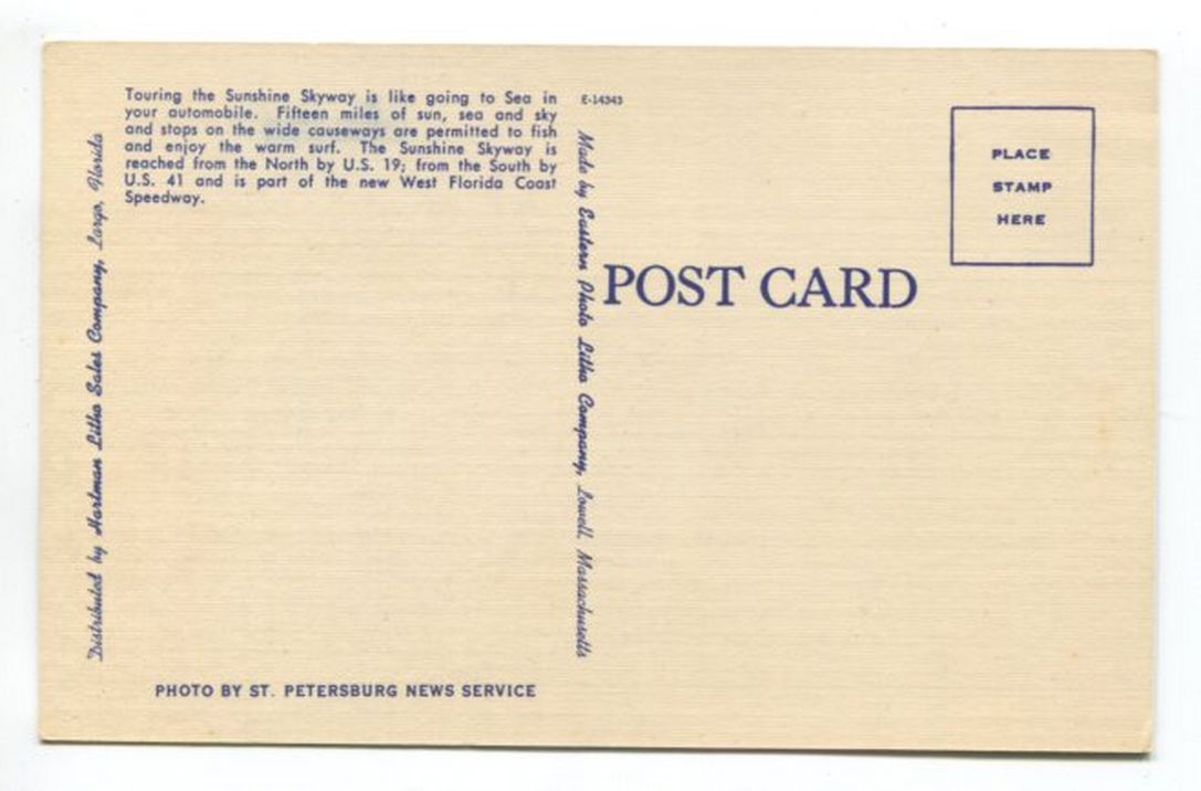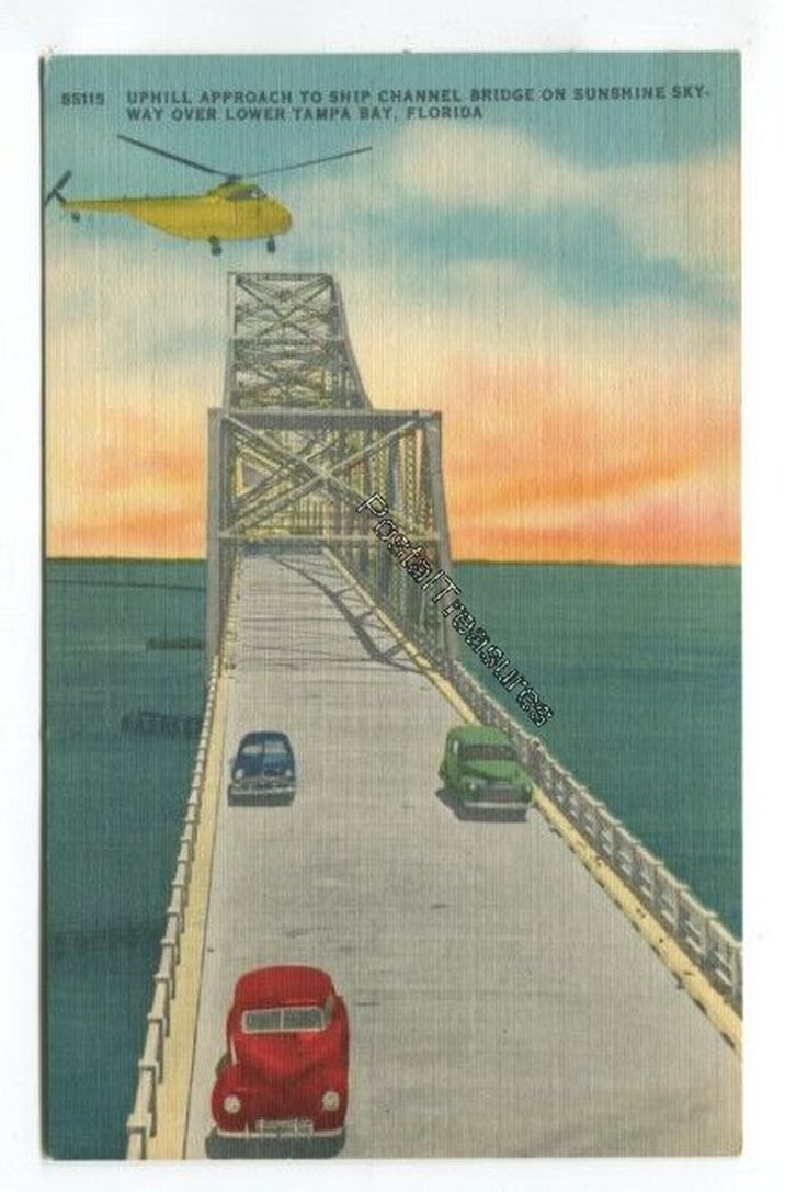 Traffic across main span of Sunshine Skyway 150 1/2 feet above Lower Tampa Bay Florida