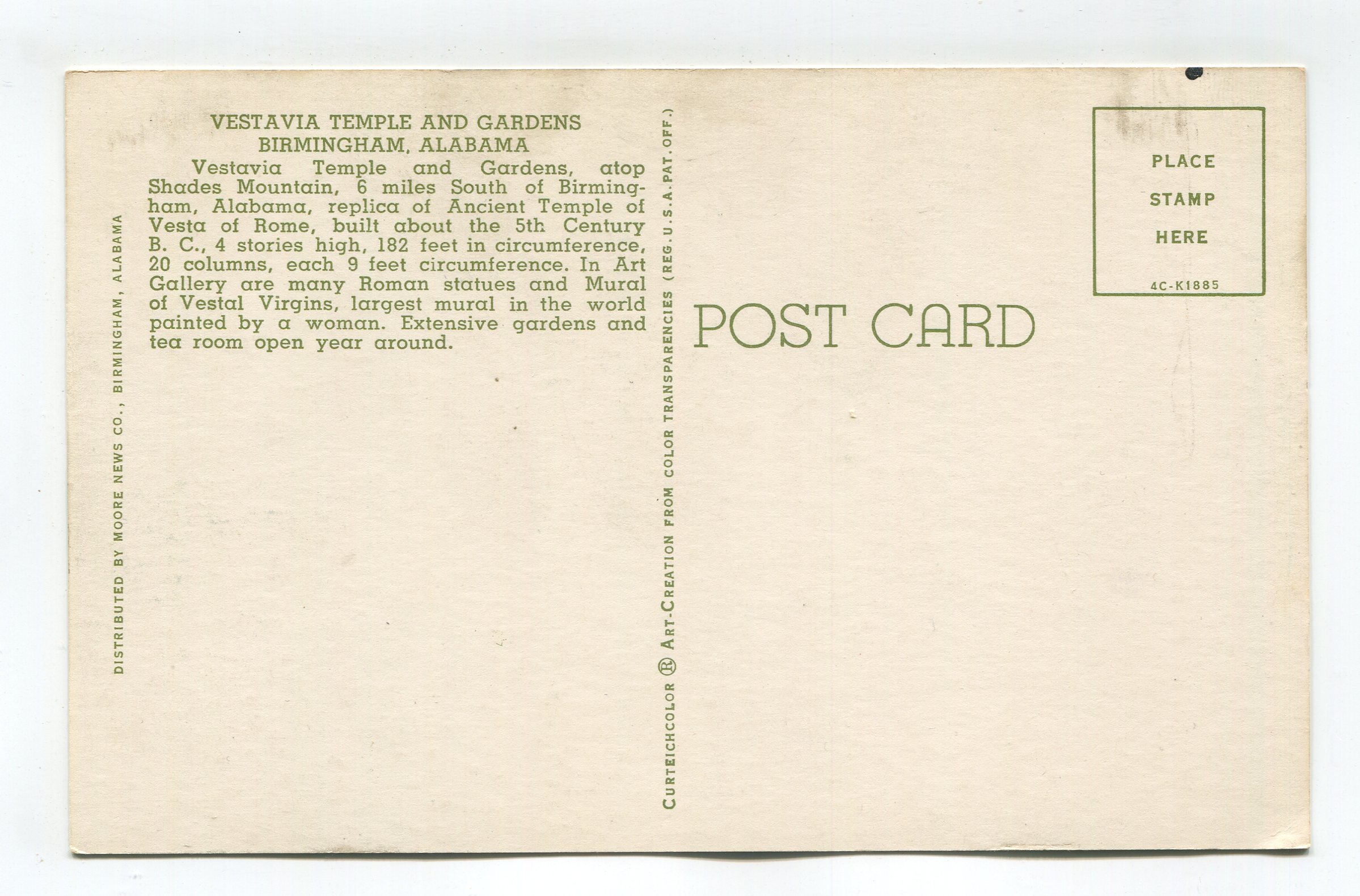 Vestavia Temple and Gardens Birmingham Alabama postcard