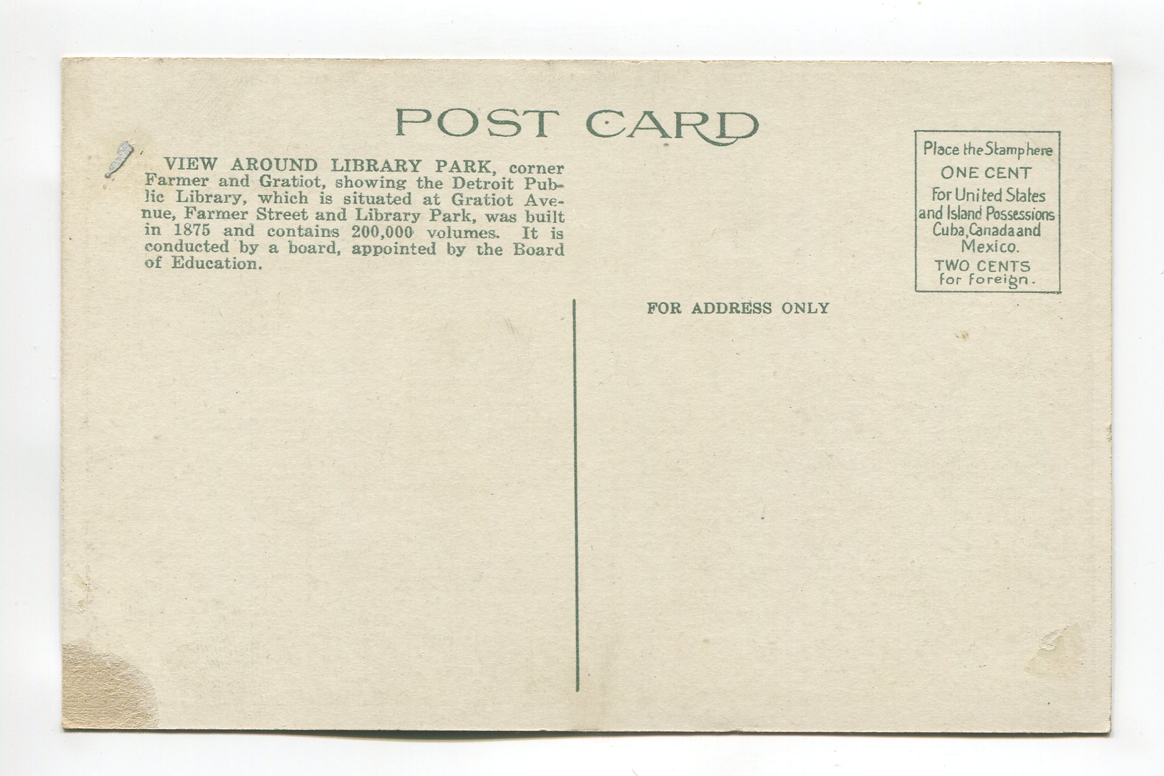 View Around Library Park Corner Farmer and Gratiot Detroit Michigan postcard