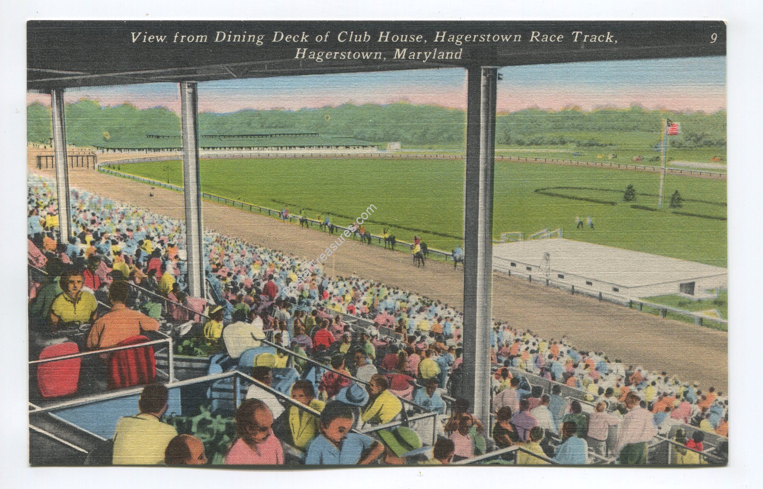 View from Dining Deck of Club House Hagerstown Race Track Maryland postcard