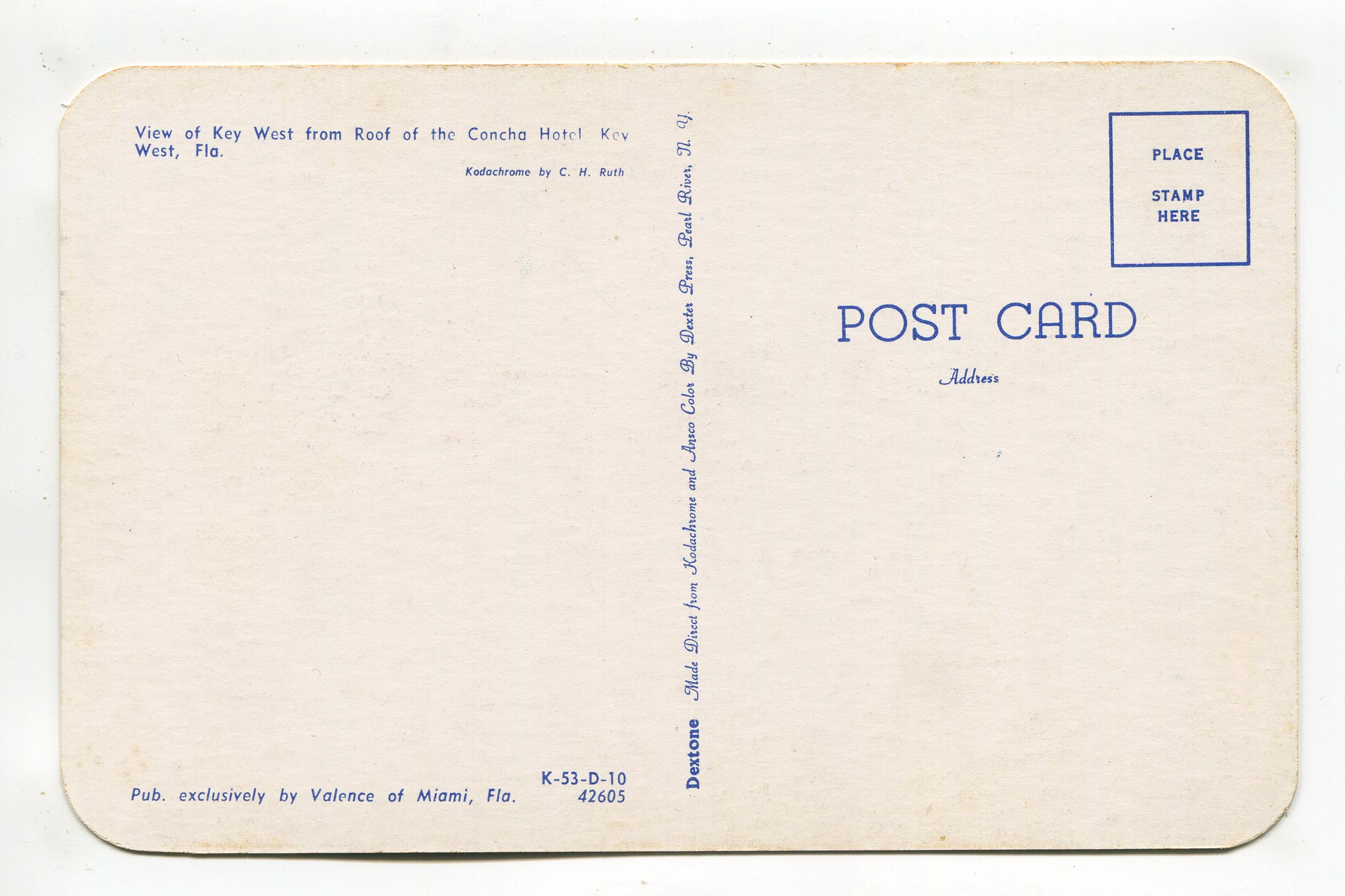 View of Key West from roof of Concha Hotel Key West Florida postcard