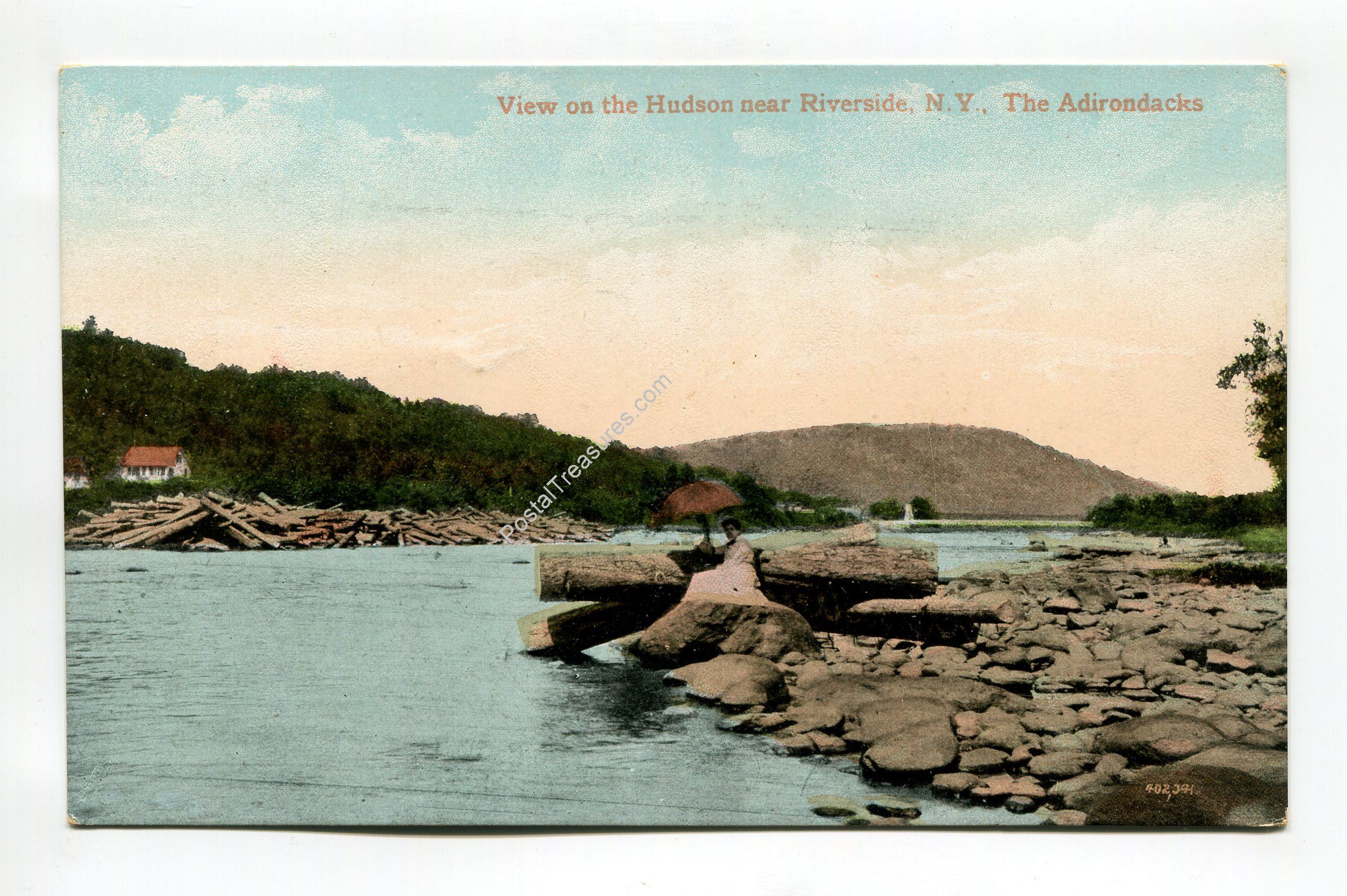 View on the Hudson near Riverside The Adirondacks New York postcard