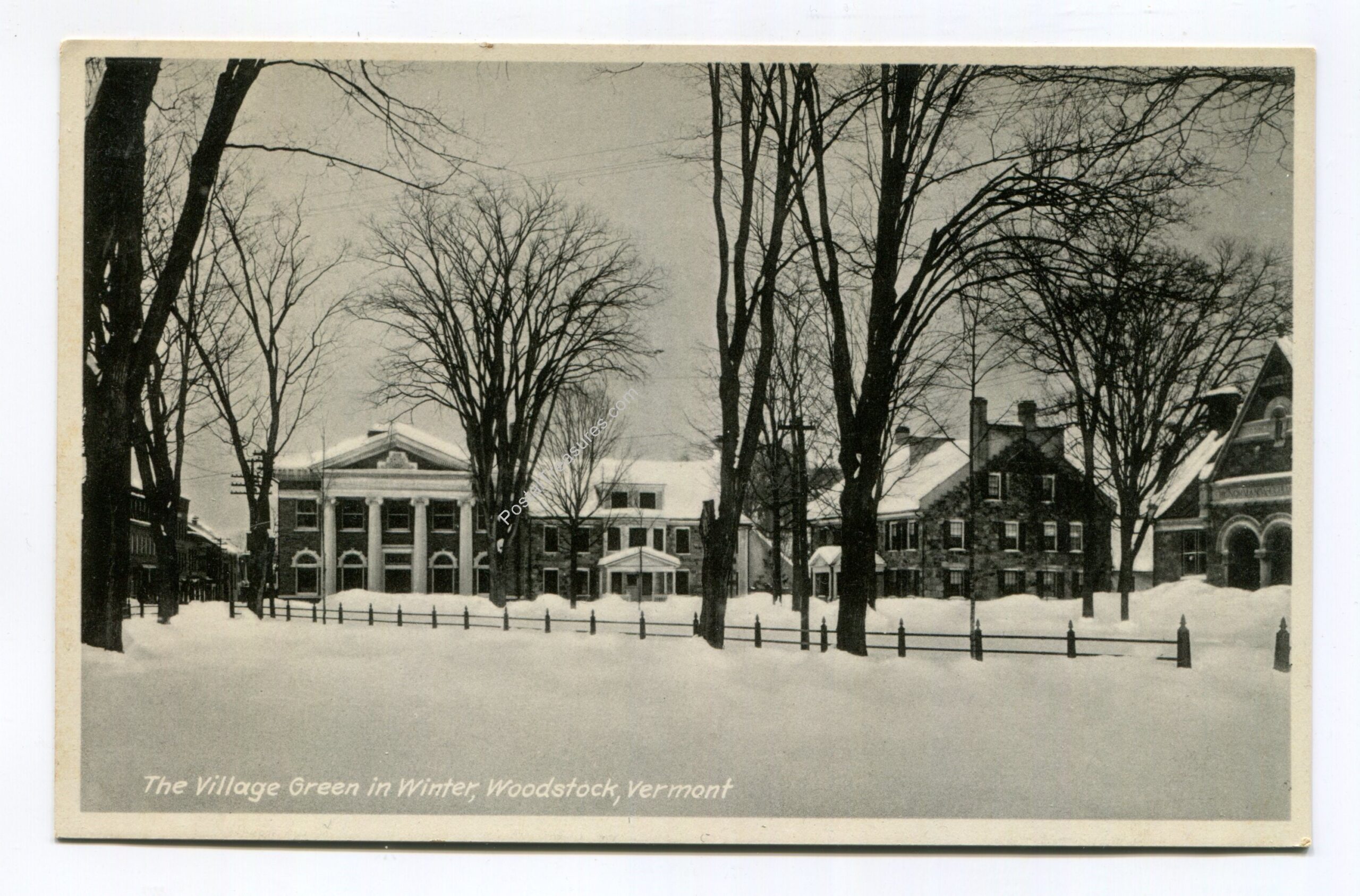 Village Green in Winter Woodstock Vermont postcard
