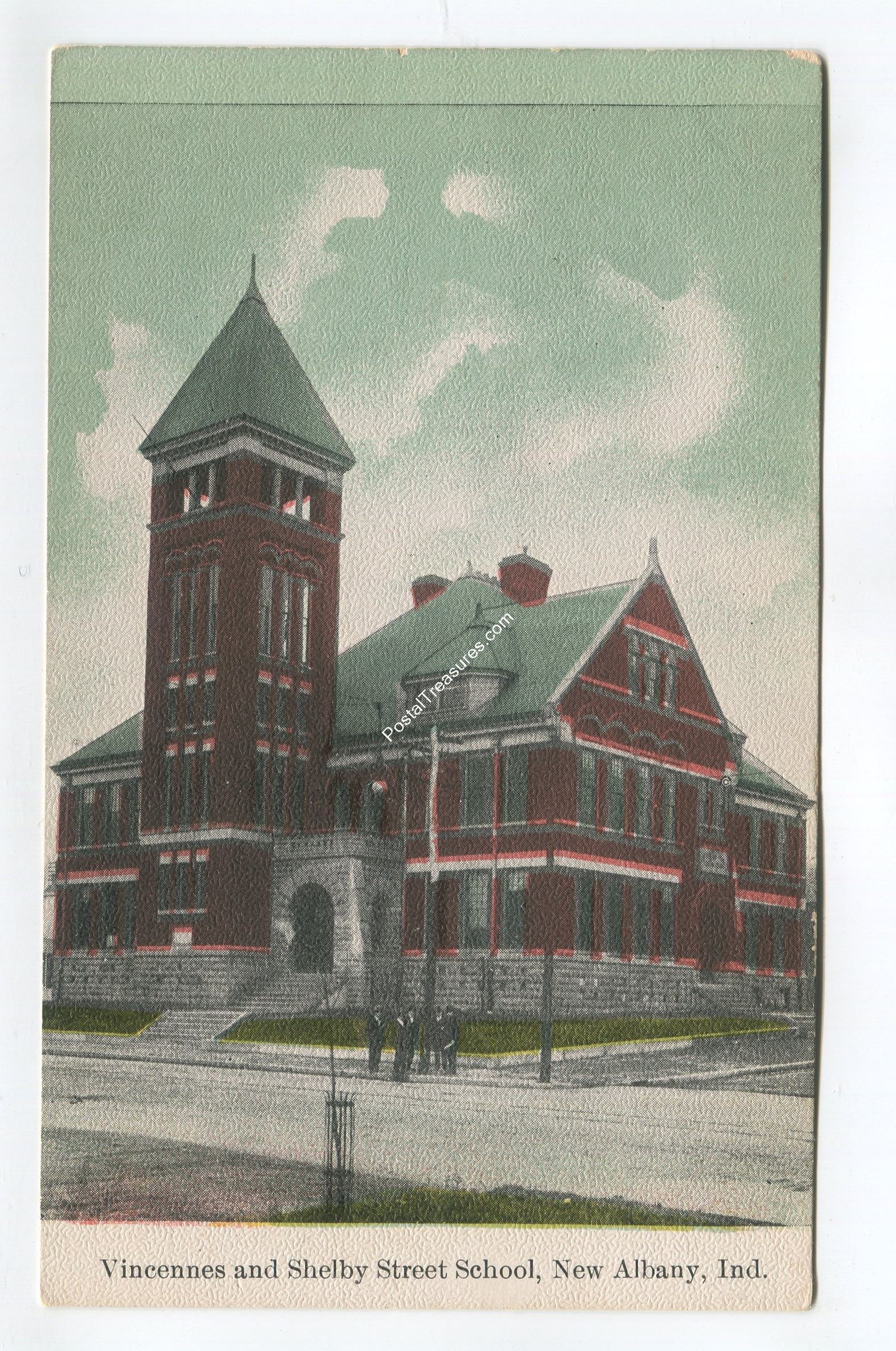 Vincennes and Shelby Street School New Albany Indiana postcard