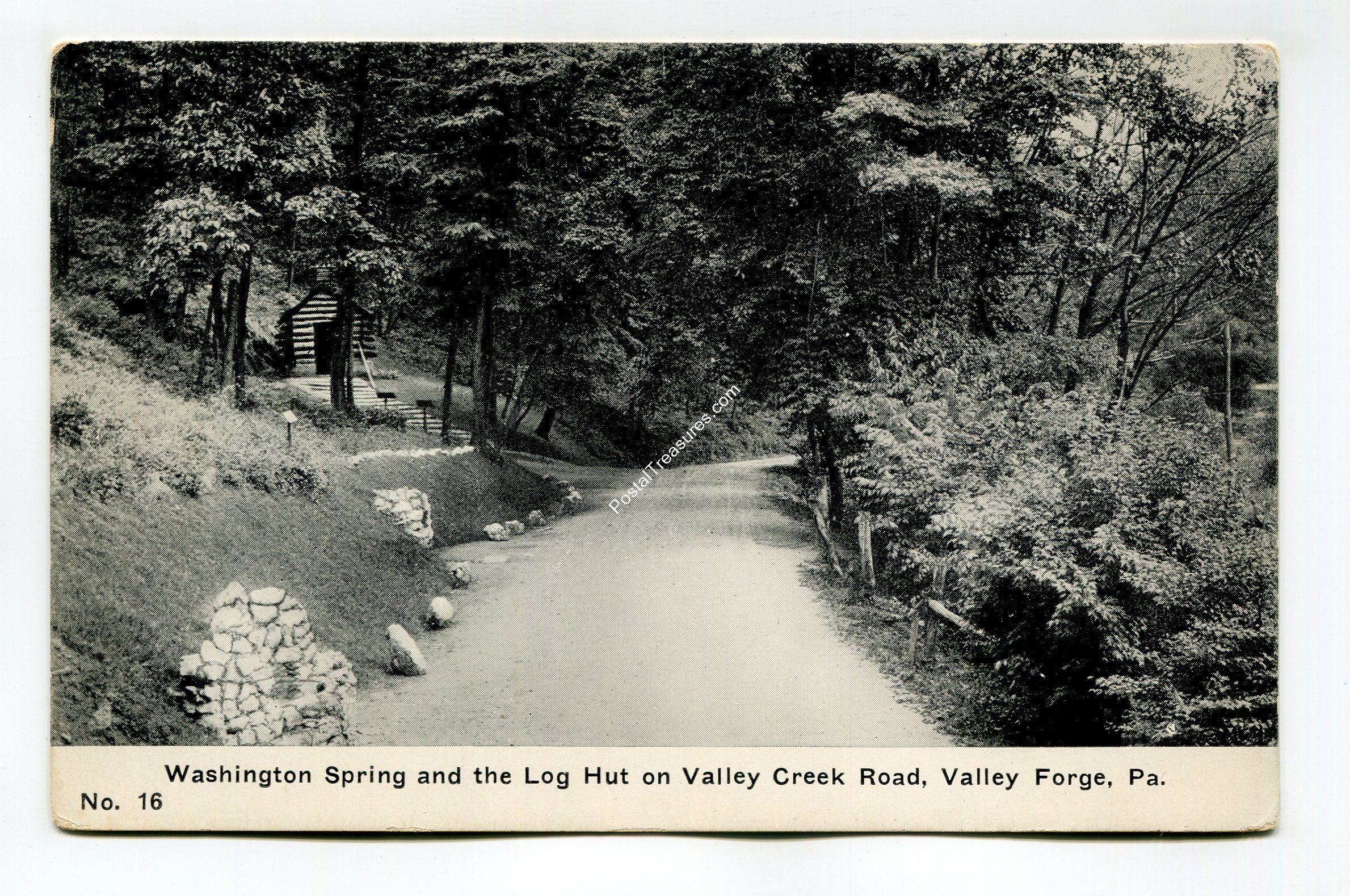 Washington Spring and Log Hut on Valley Creek Road Valley Forge Pennsylvania postcard