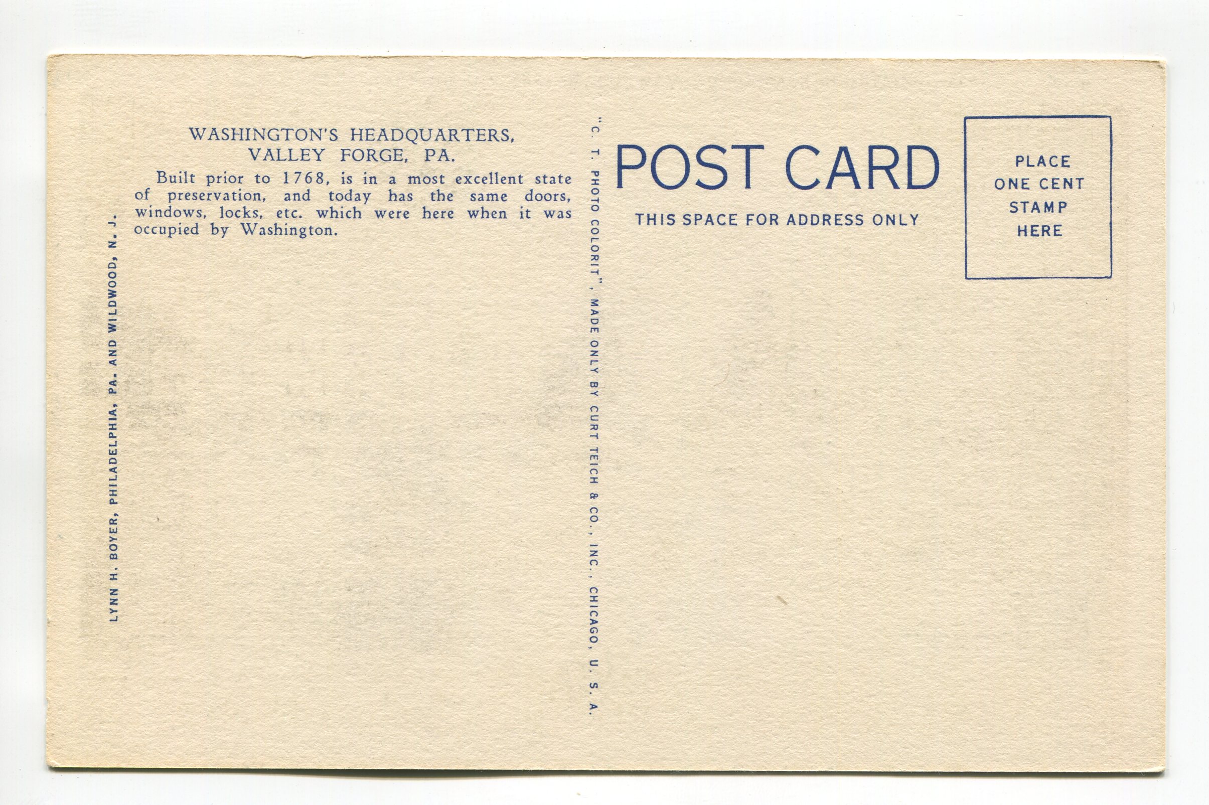 Washington’s Headquarters Valley Forge Pennsylvania postcard