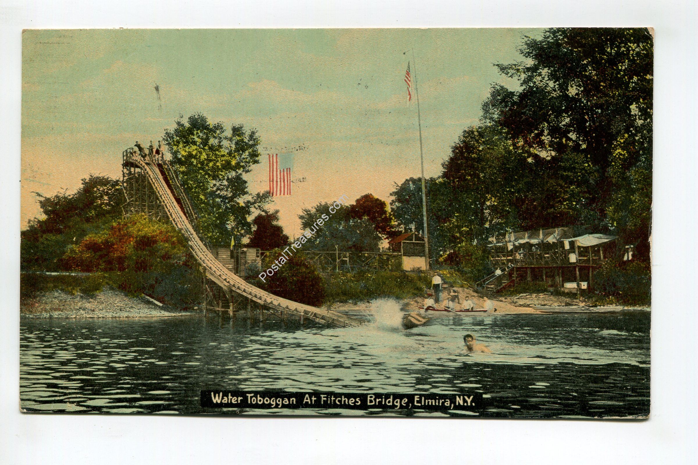 Water Toboggan At Fitches Bridge Elmira New York postcard