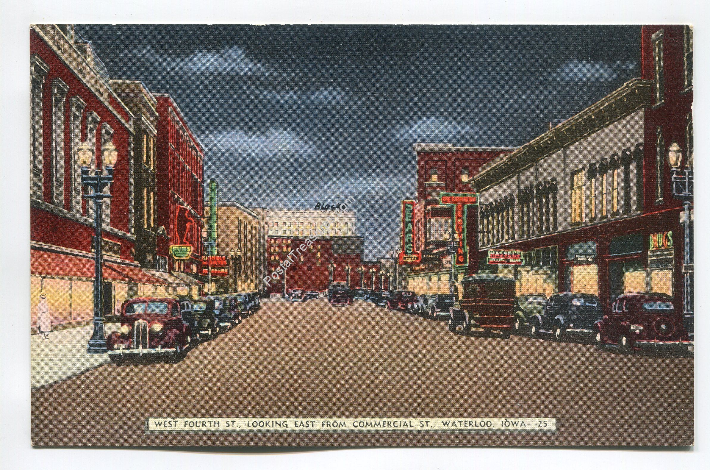 West Fourth Street looking east from Commercial Street Waterloo Iowa postcard