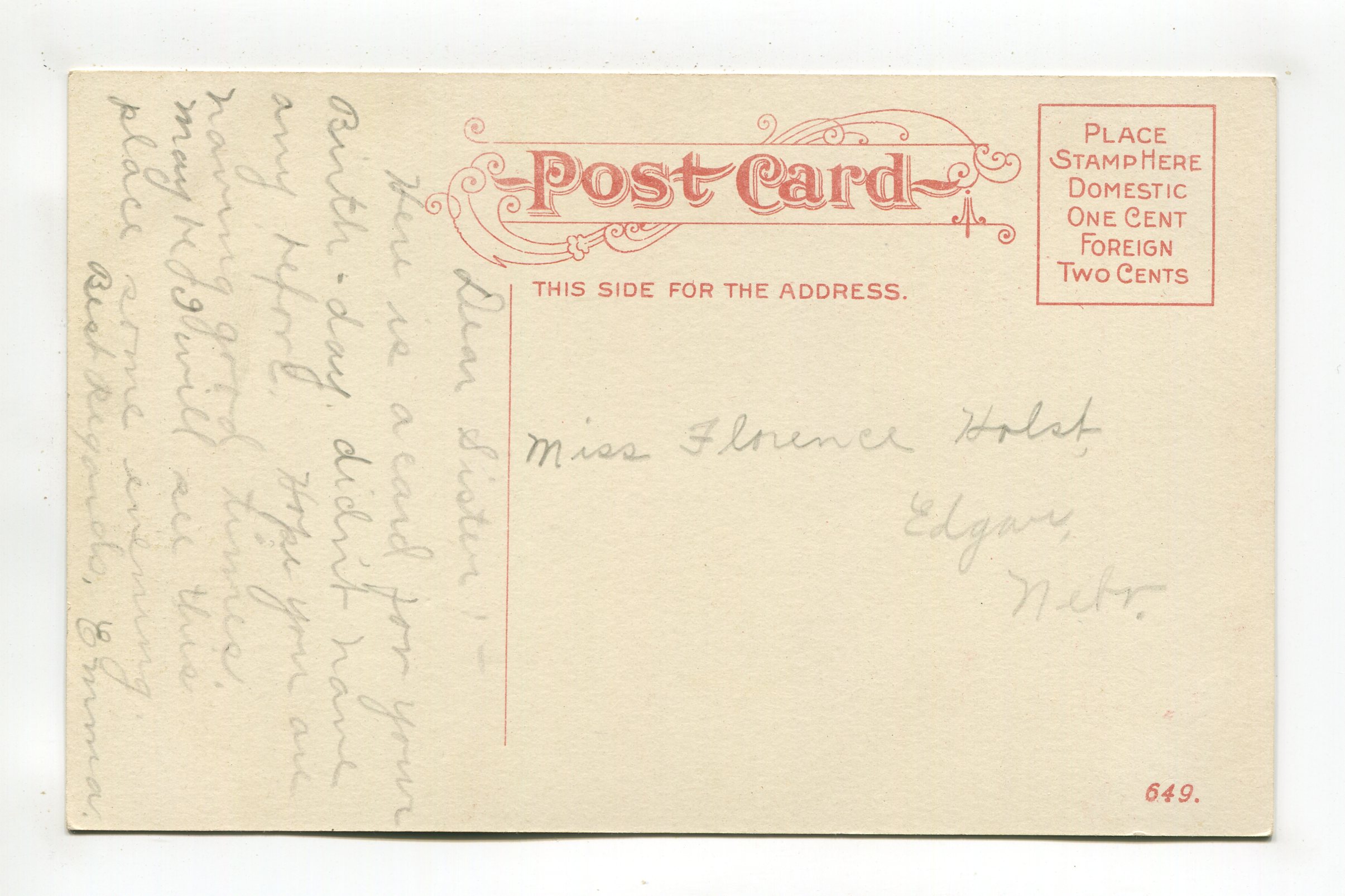 Condition – corner/edge wear, rear message impression visible on card front, soiling/marks