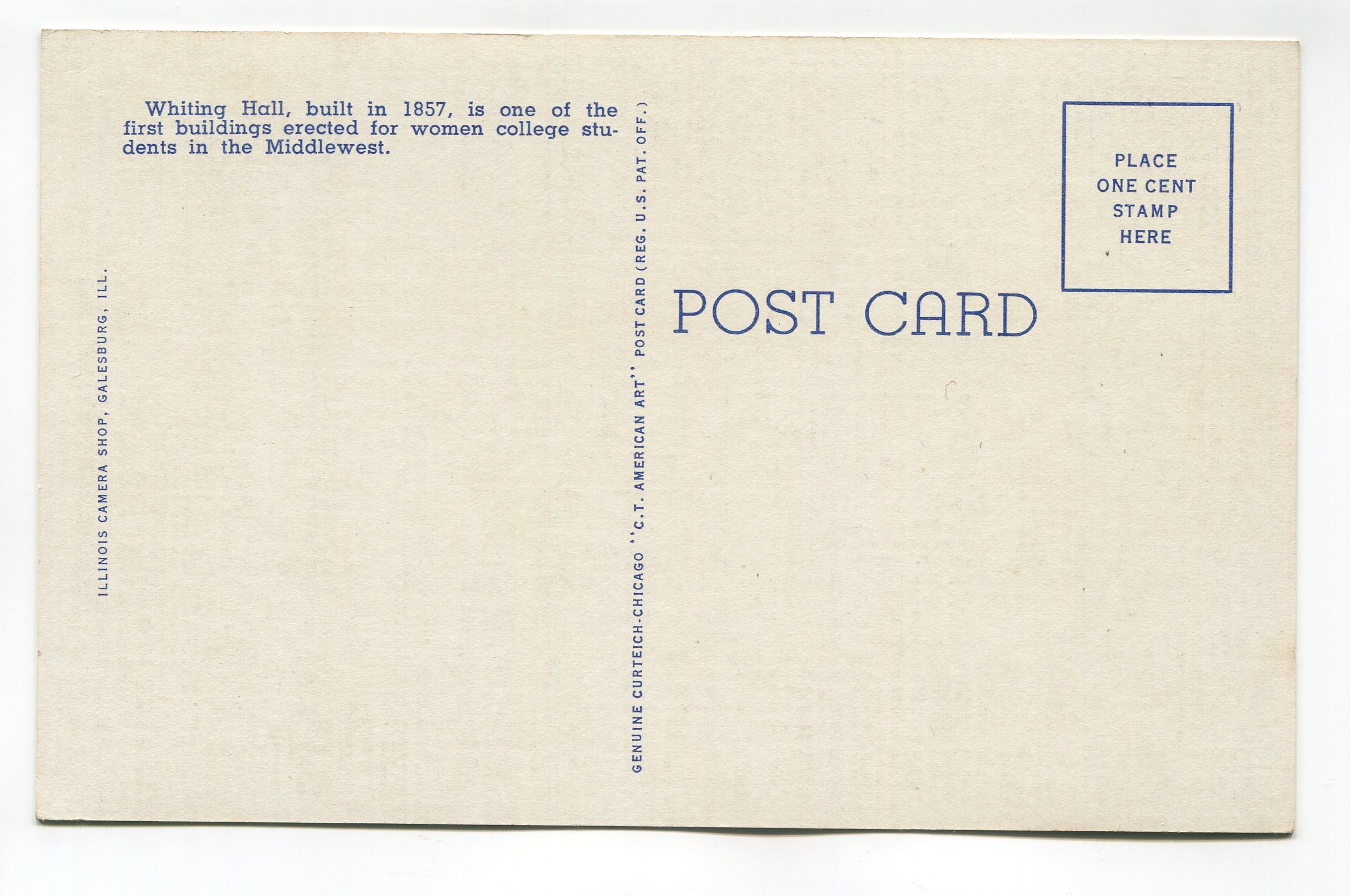 Whiting Hall Dormitory for Women Knox College Galesburg Illinois postcard