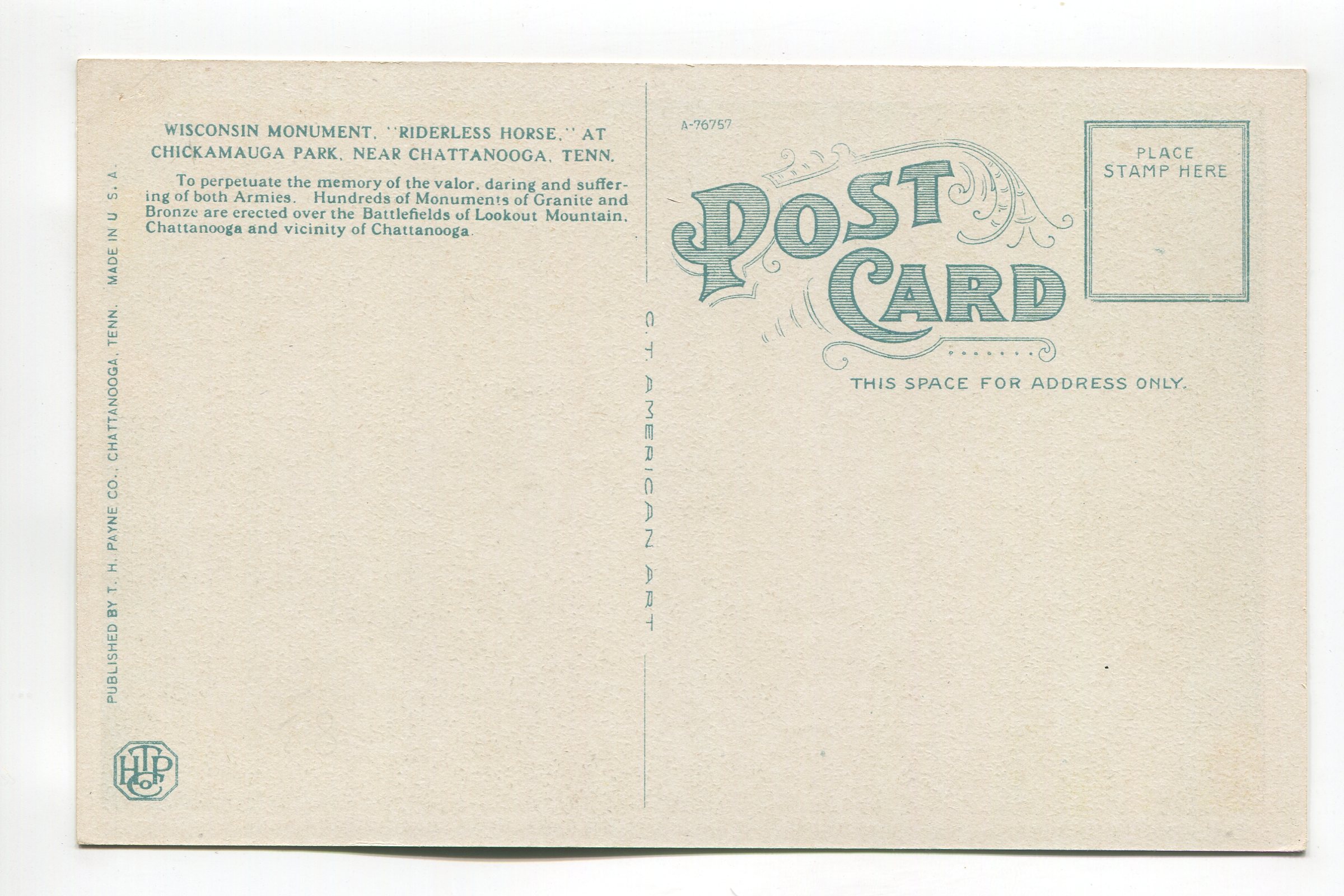 Wisconsin Monument Riderless Horse at Chickamauga Park near Chattanooga Tennessee postcard