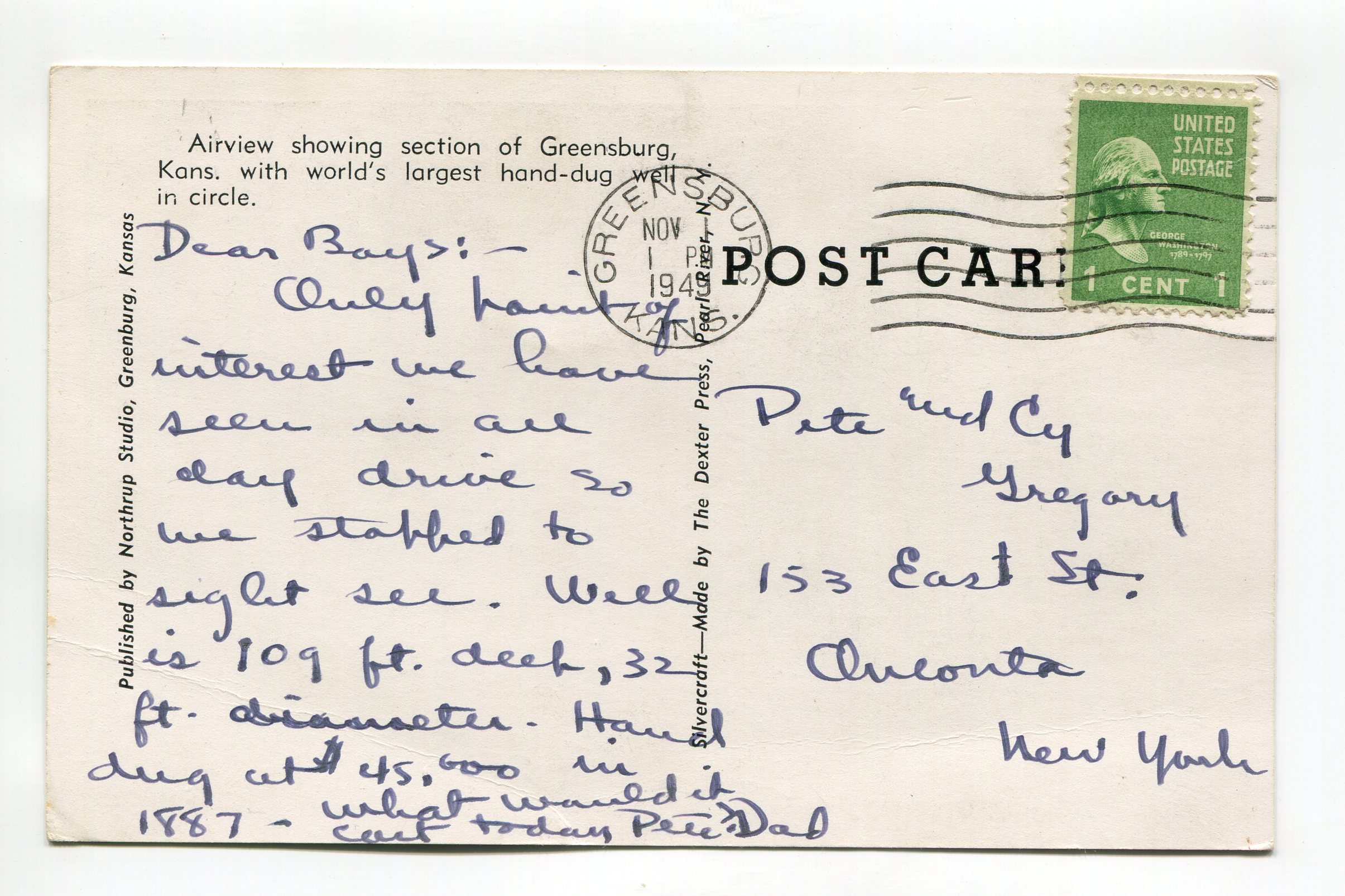 Condition – noticeable corner/edge wear, heavy large crease in lower right quarter of card, horizontal crease in lower and upper left edges, cancellation mark/impression on front, rear message impression visible on card front,soiling/marks
