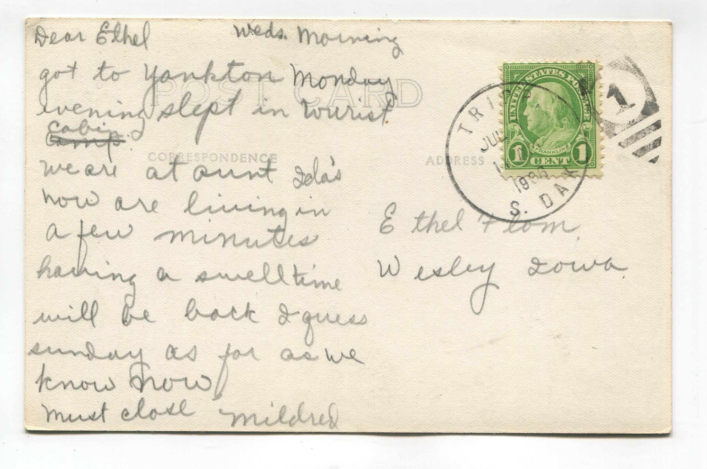 Condition – noticeable corner/edge wear, crease in corners, large diagonal crease near upper left corner, heavy cancelation impression visible on card front, marks on card front, soiling/marks