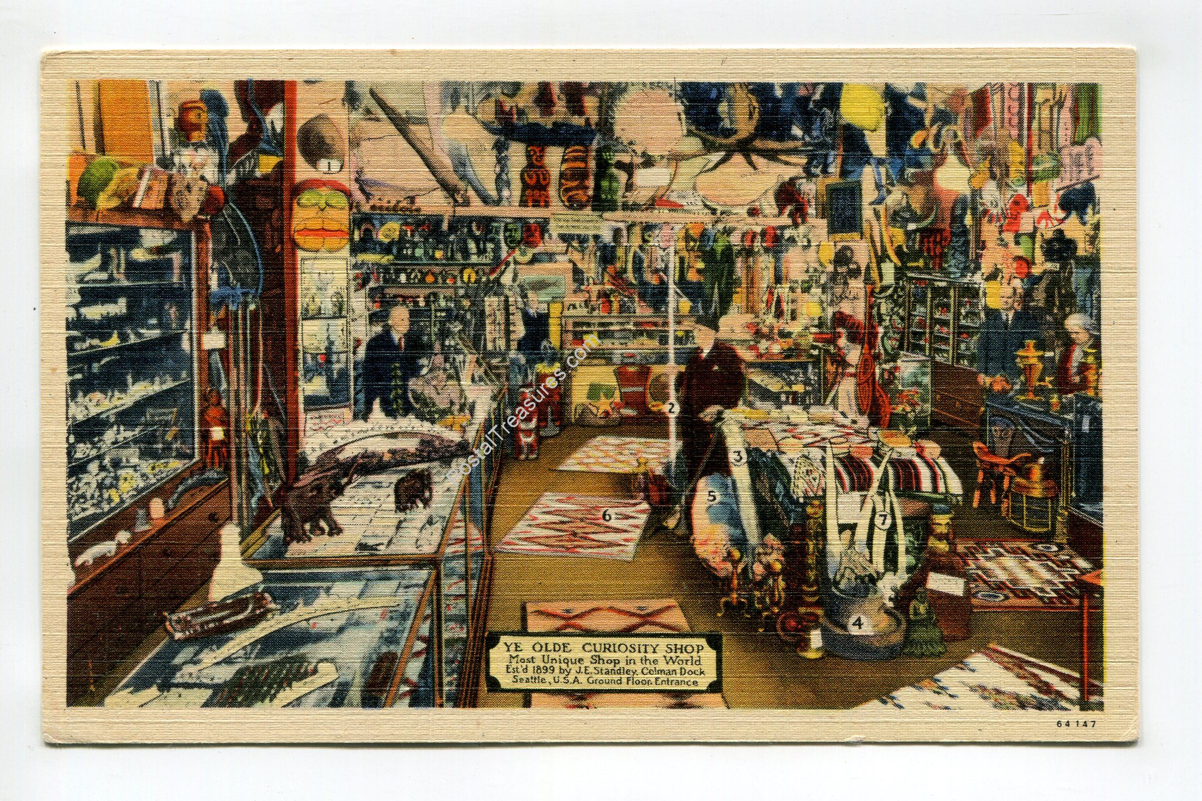 Ye Olde Curiosity Shop Established by J E Ground Floor Entrance Colman Dock Seattle Washington postcard