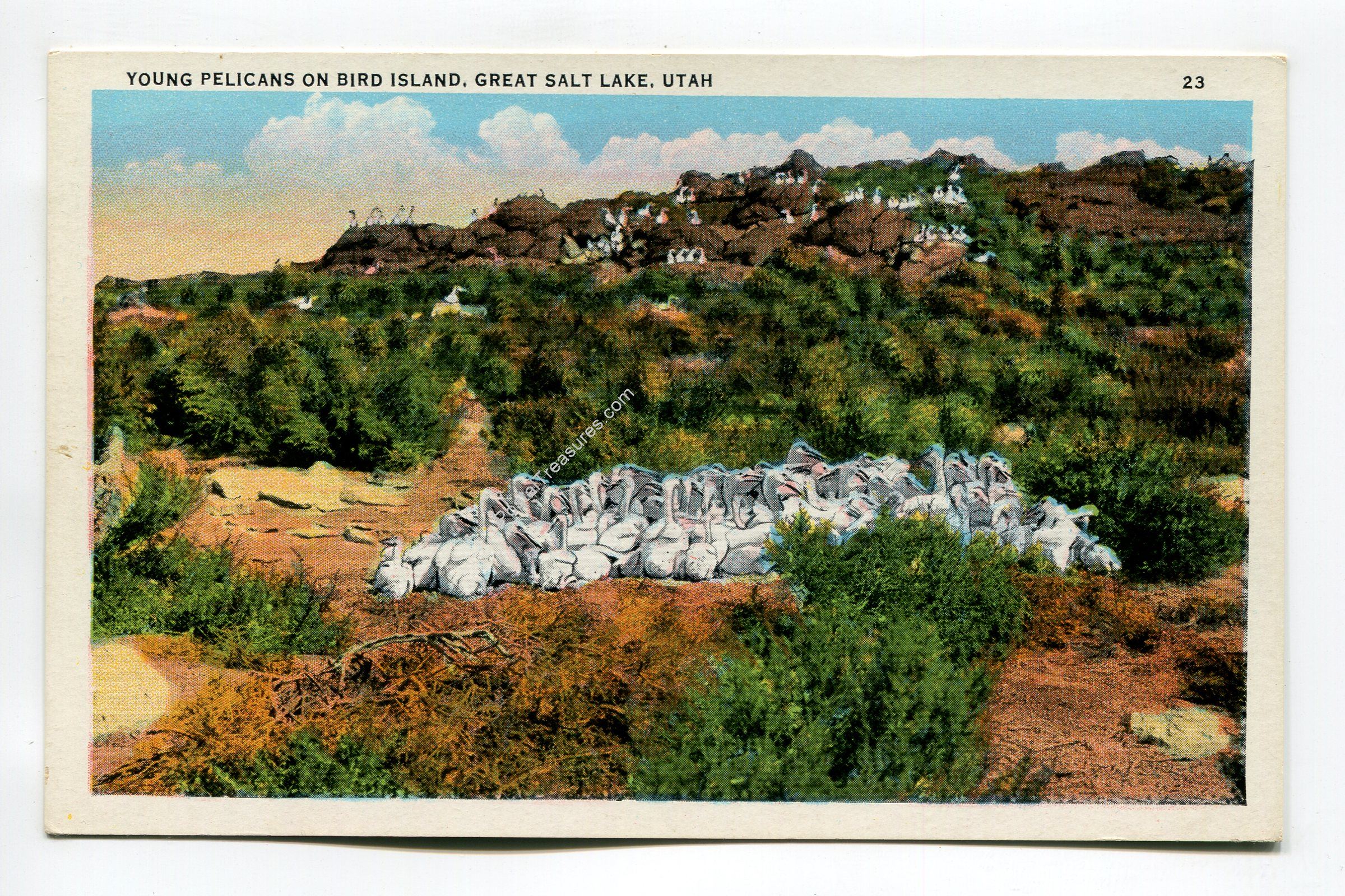 Young Pelicans on Bird Island Great Salt Lake Utah postcard